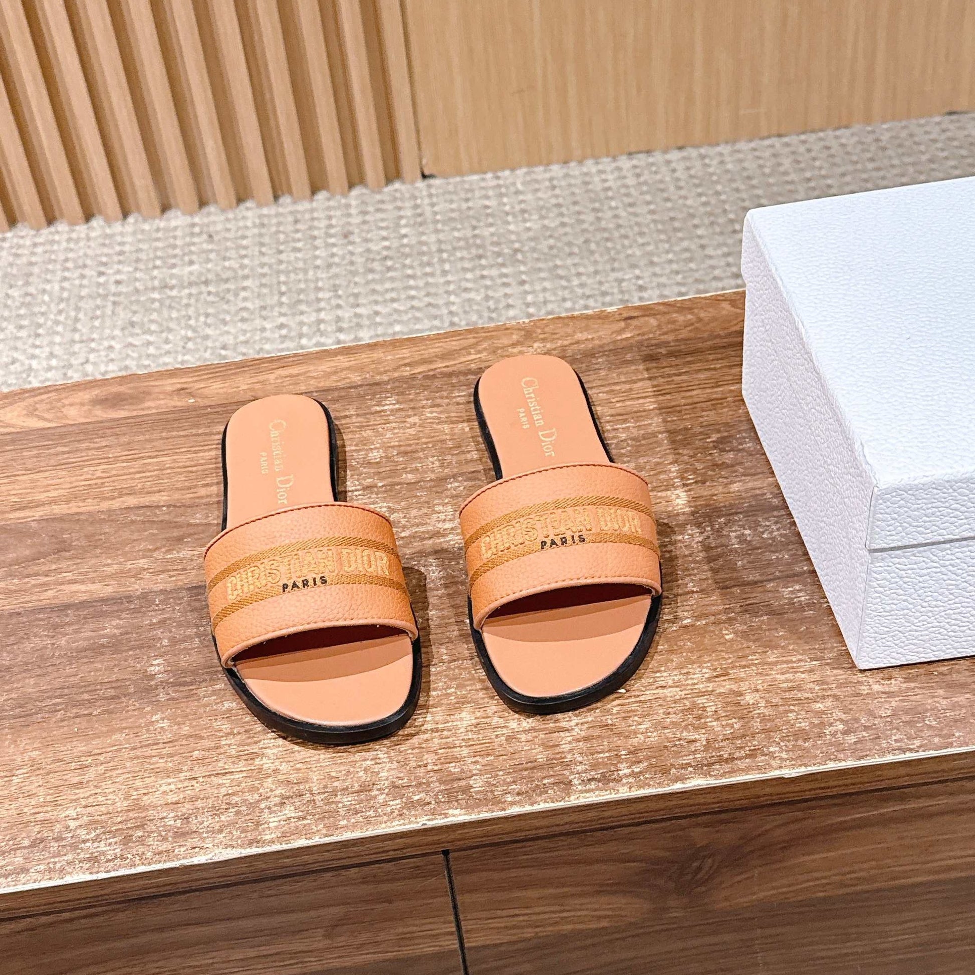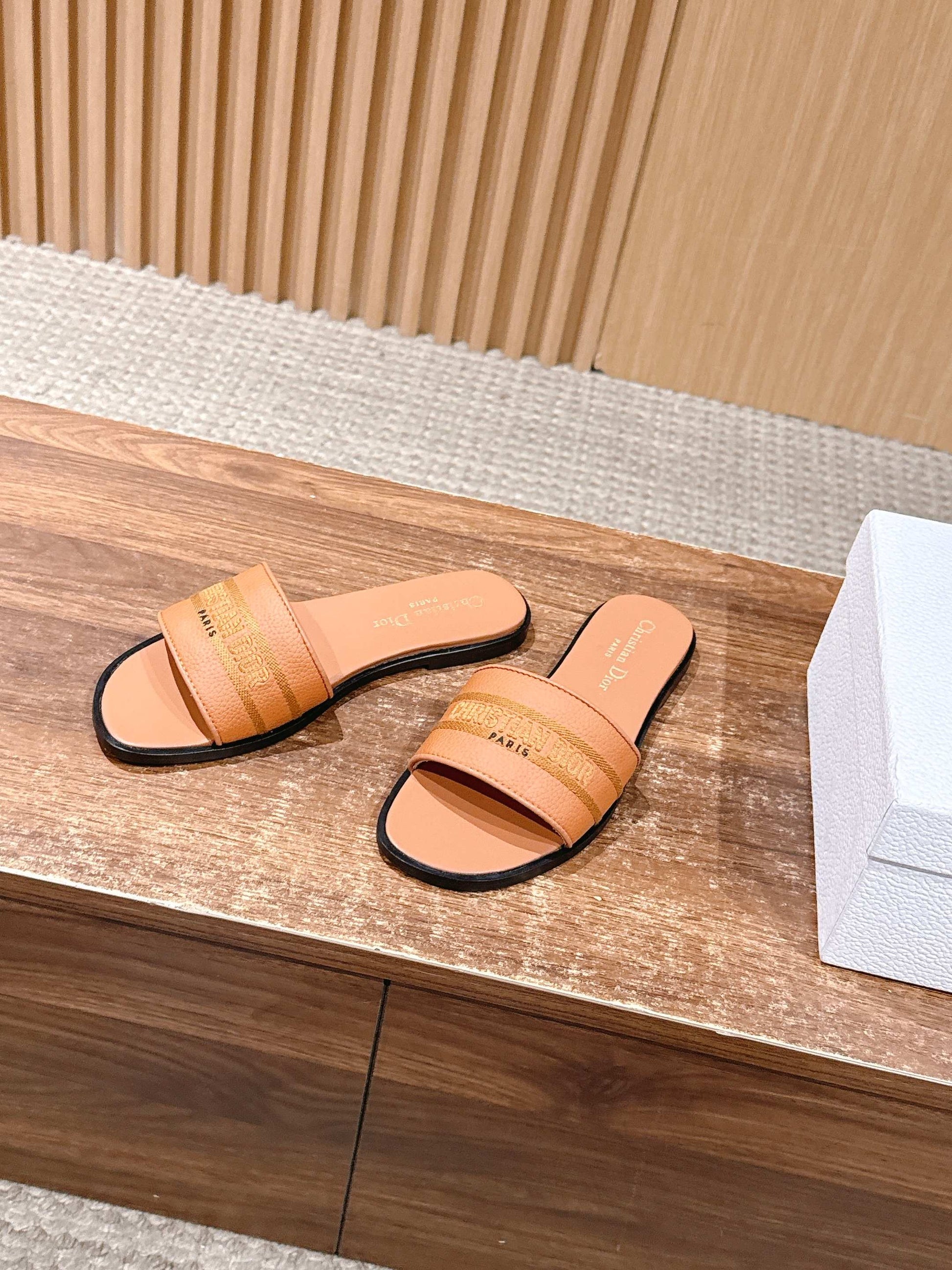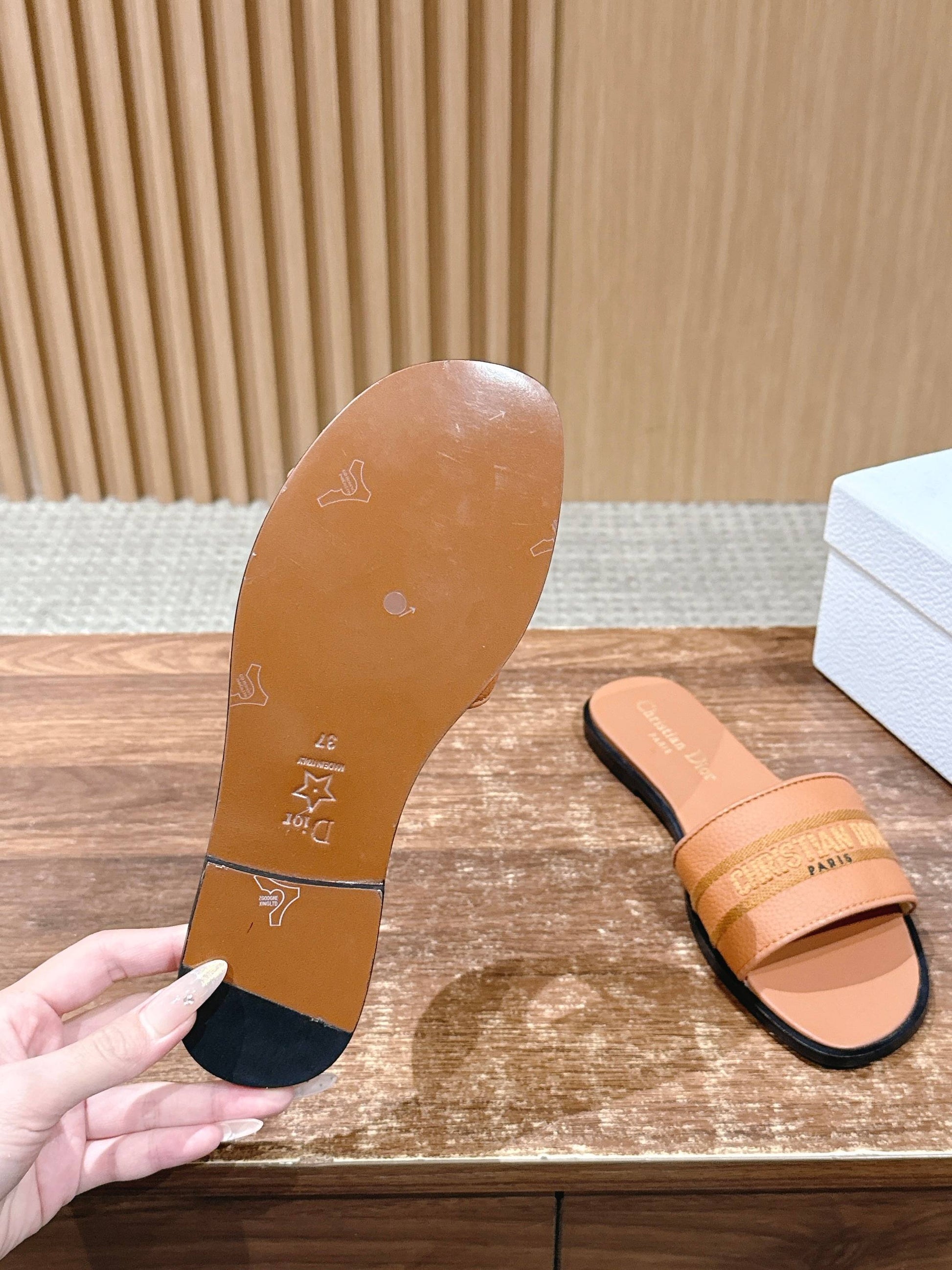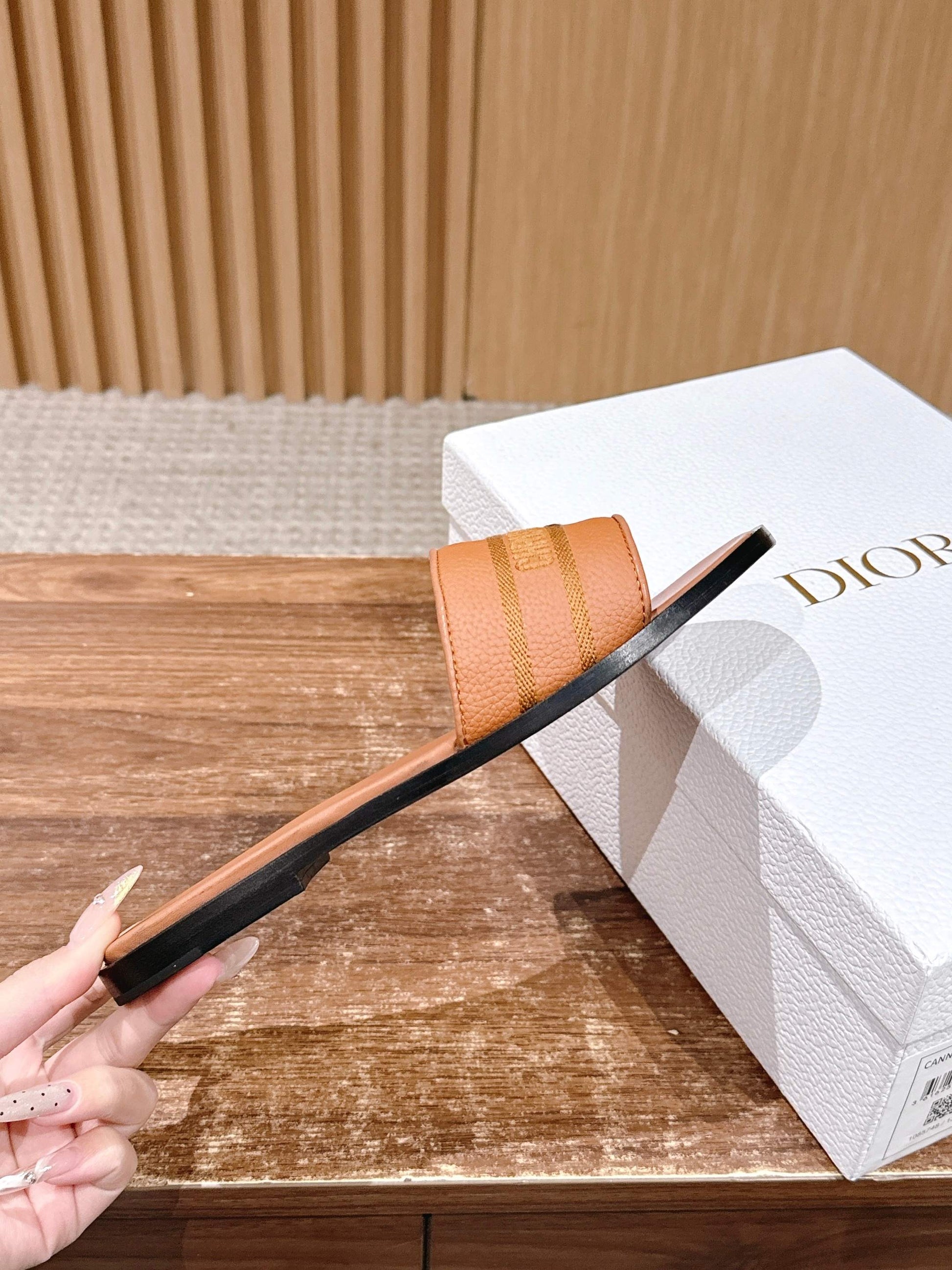 CD 26 Embroidered Slippers Camel Brown Cowhide 610277