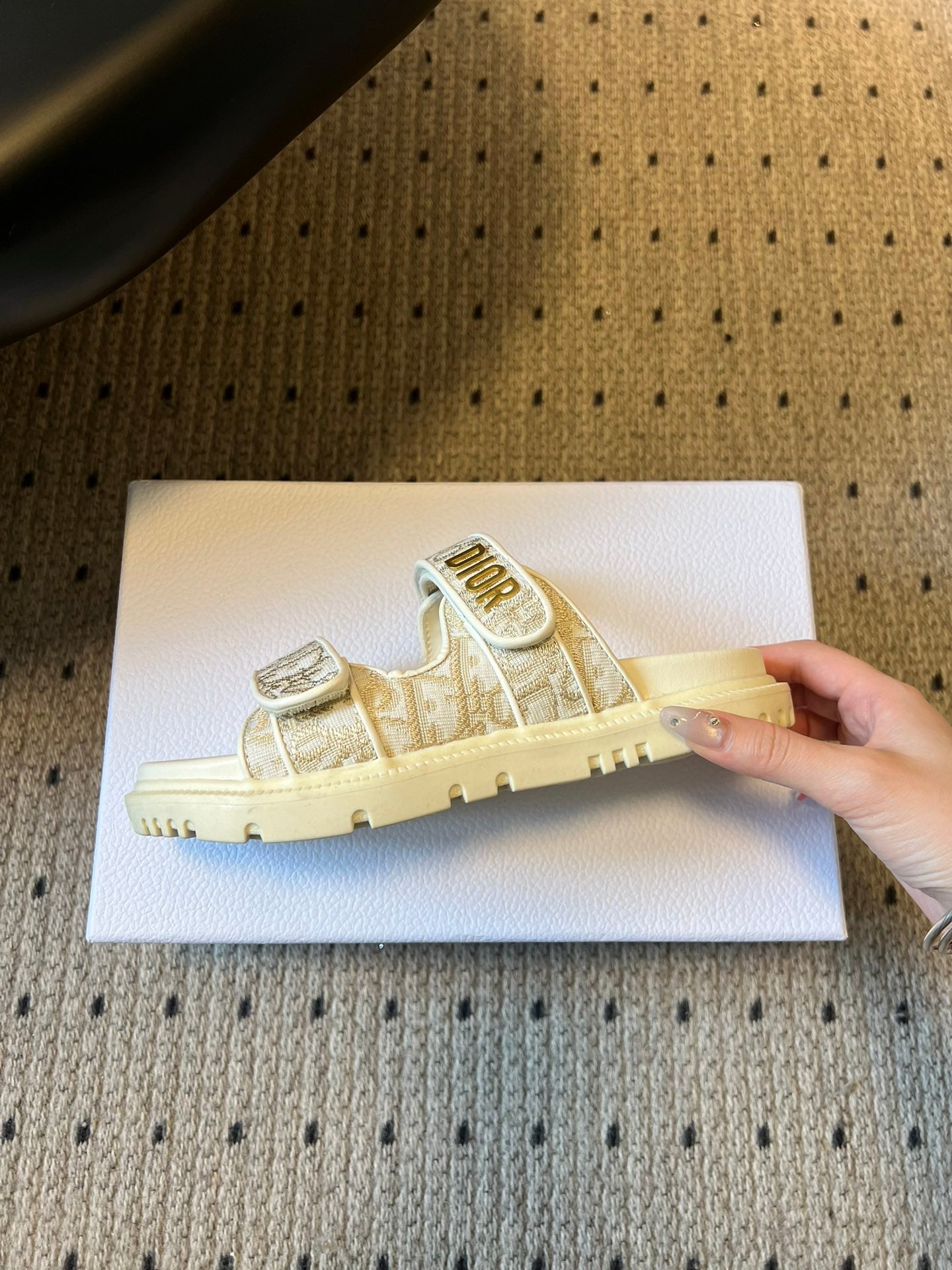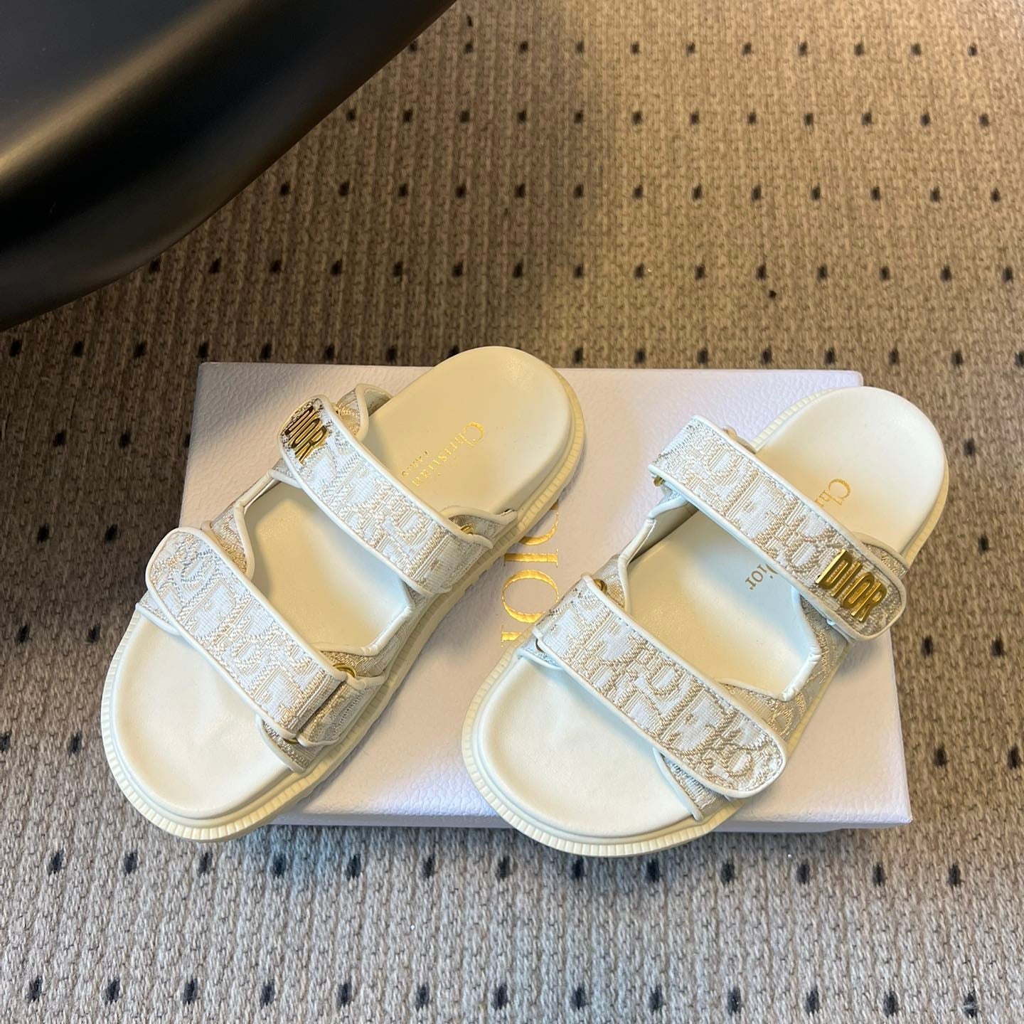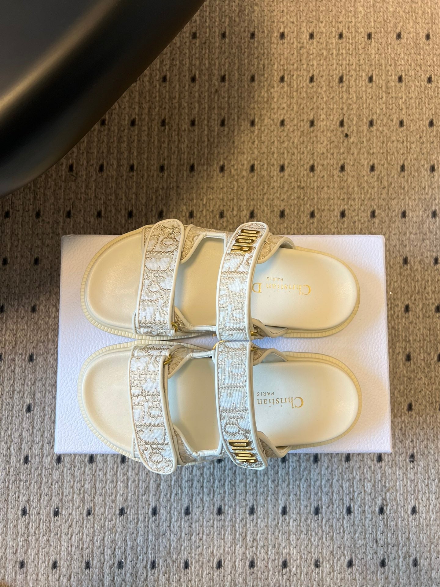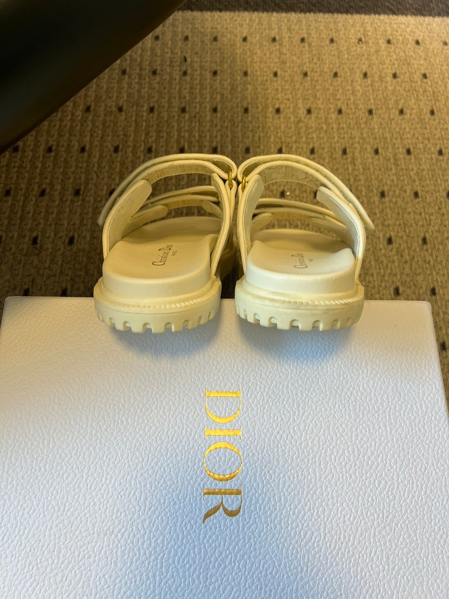 CD 26 Flat Slippers White Beige Sheepskin Embroidered Fabric 621801
