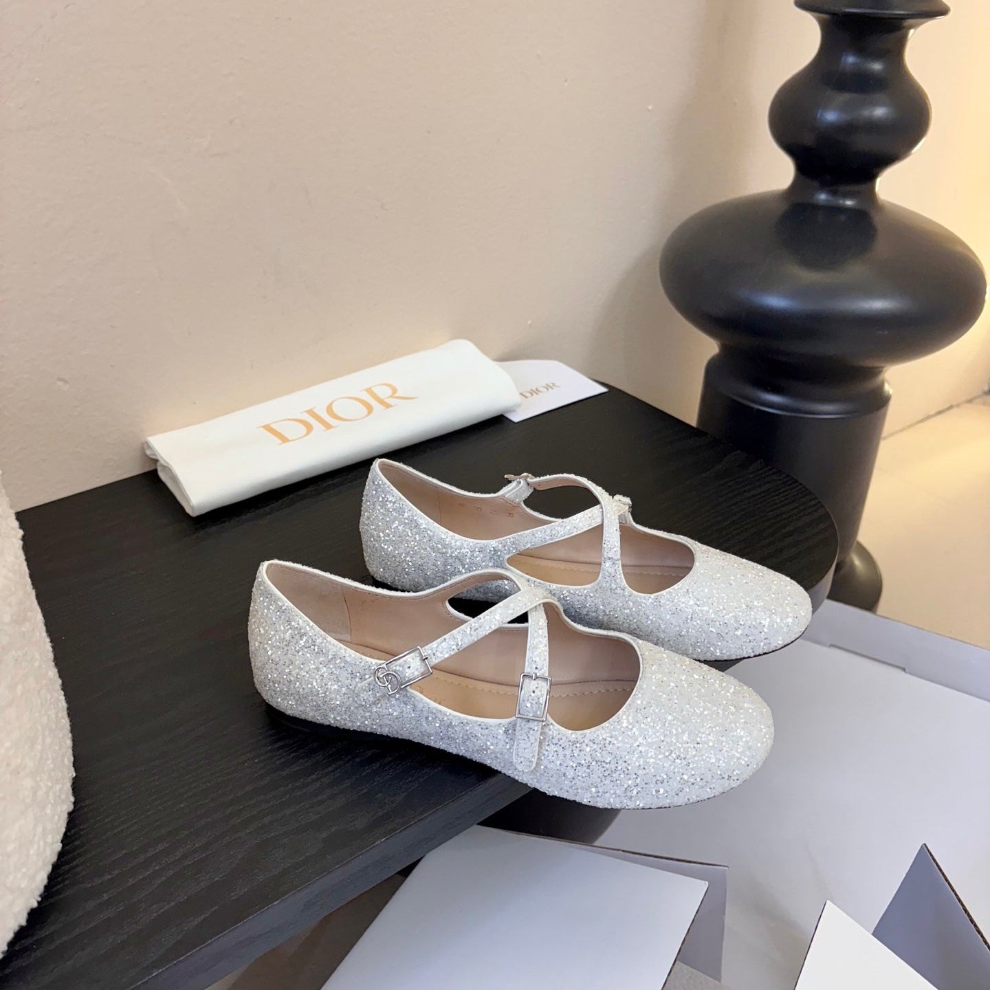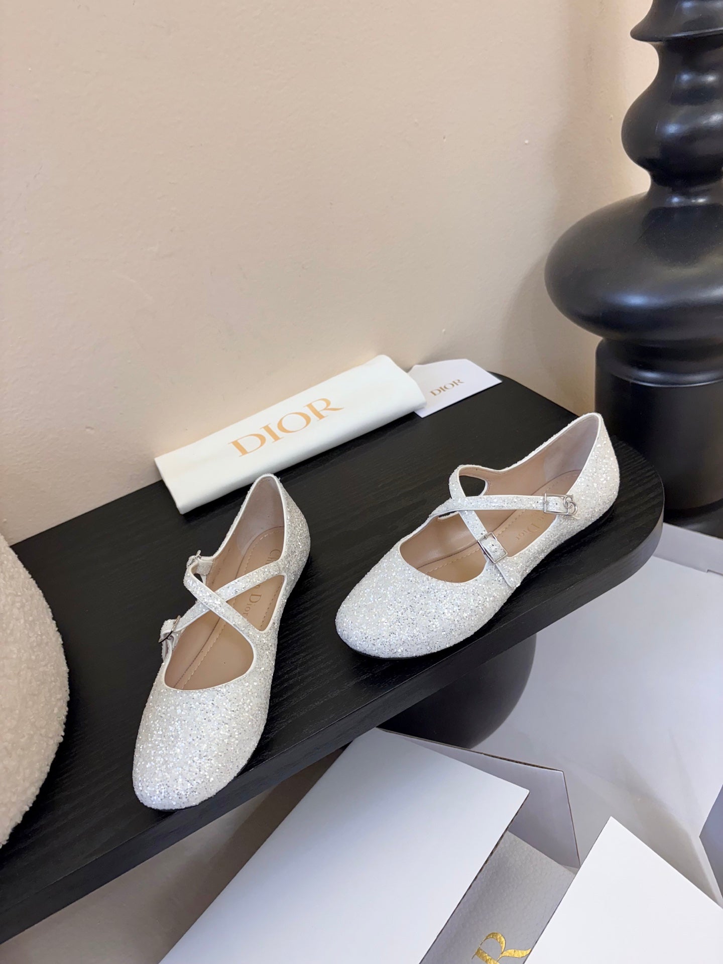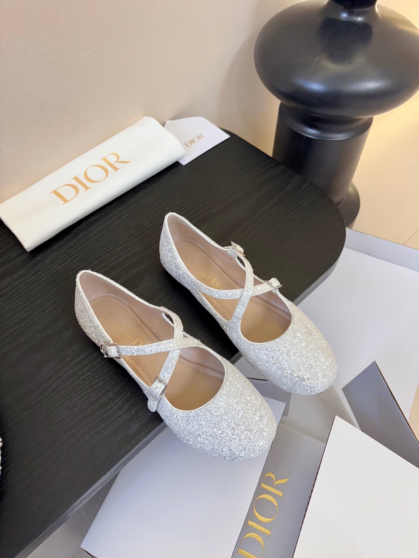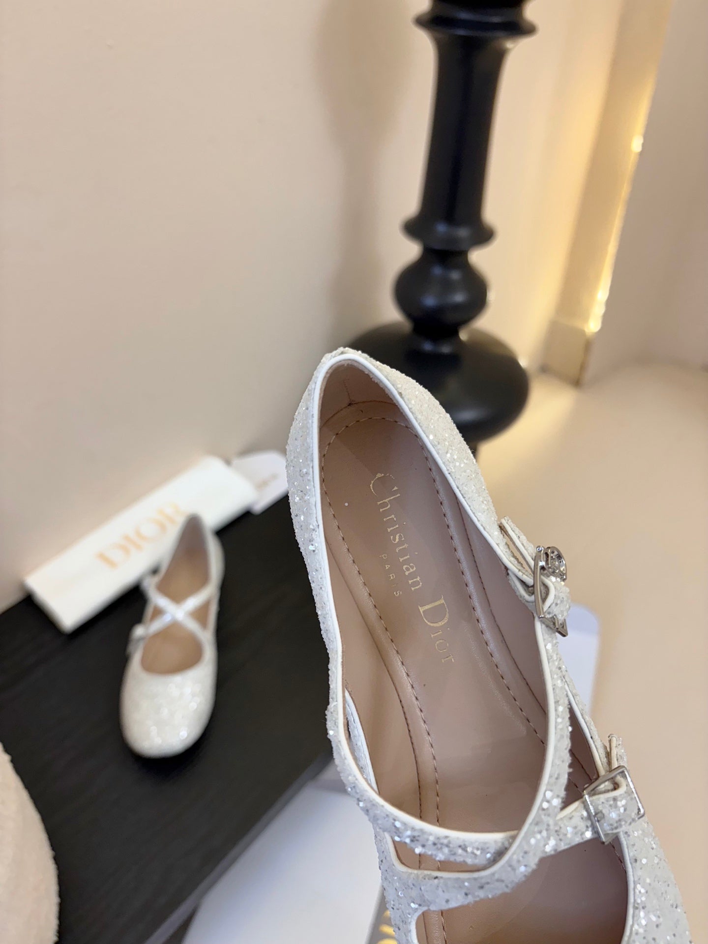 CD 26 Mary Jane White Glitter Embroidered Mesh Leather 627347