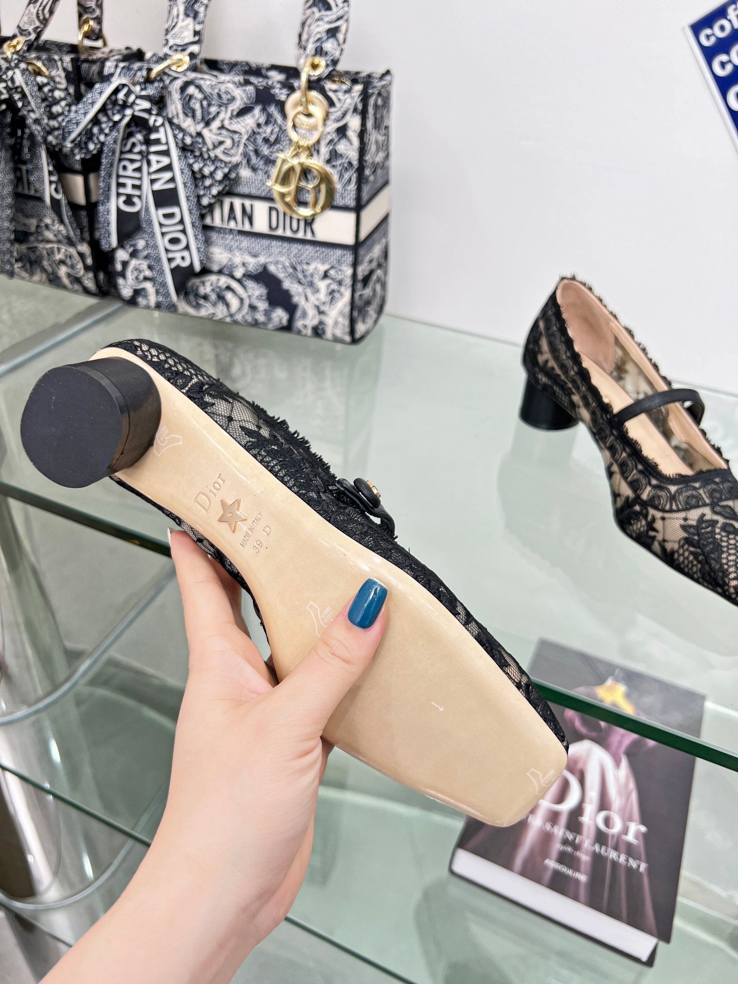 - Material: Calfskin, transparent mesh embroidered