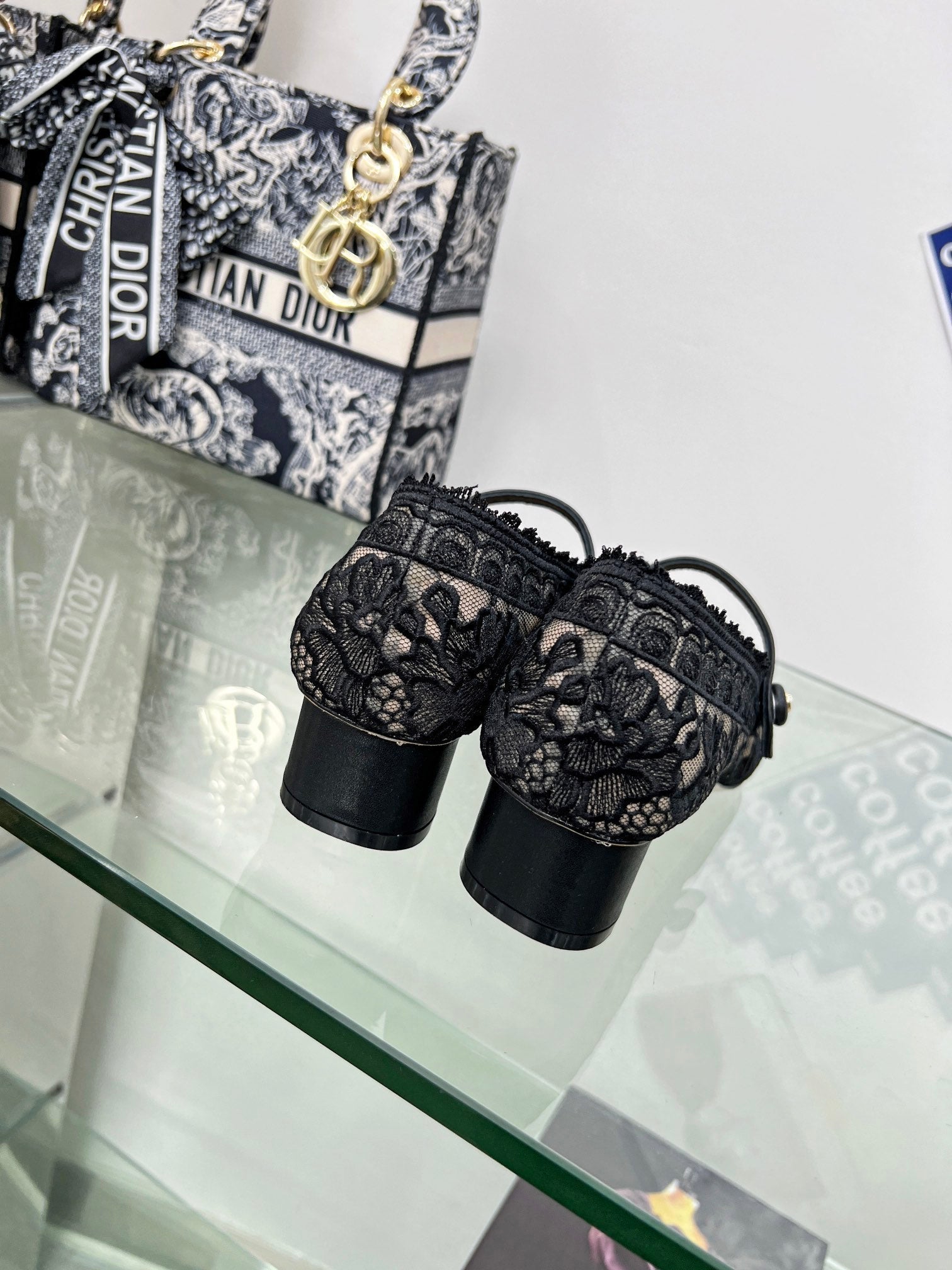 cd mary jane transparent mesh embroidered black flower motif