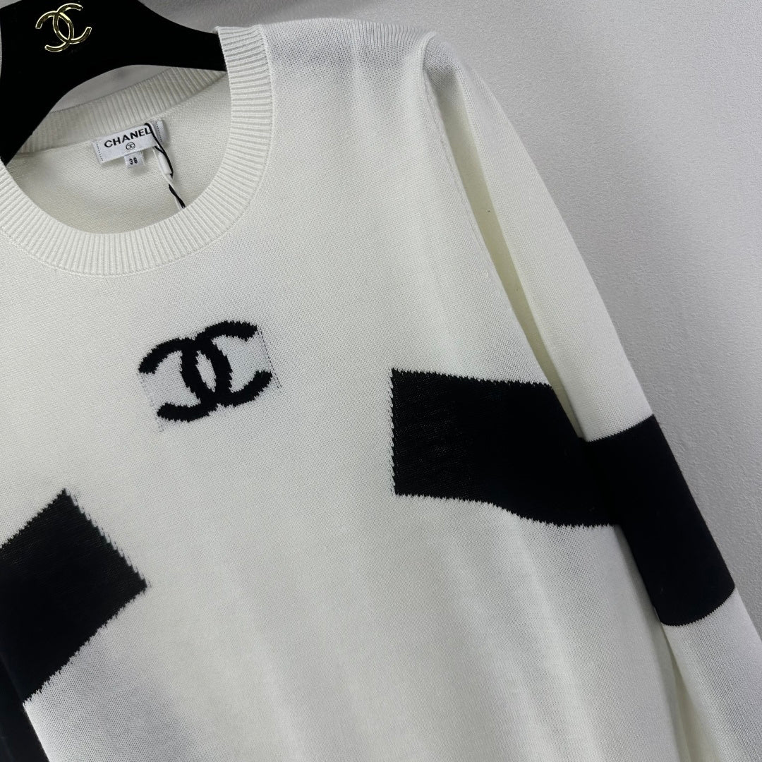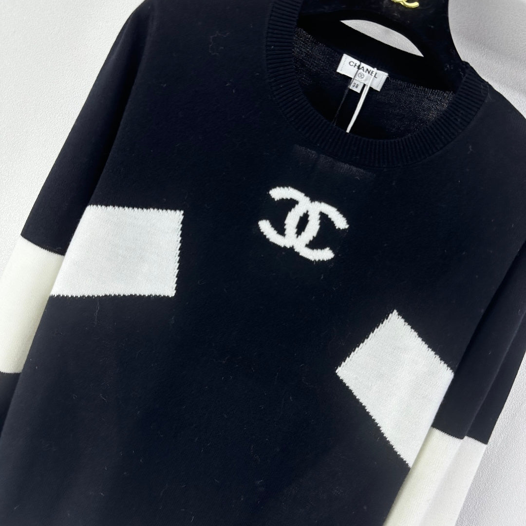 Chanel 2025 Long-sleeved Shirt Black and White Wool 329217