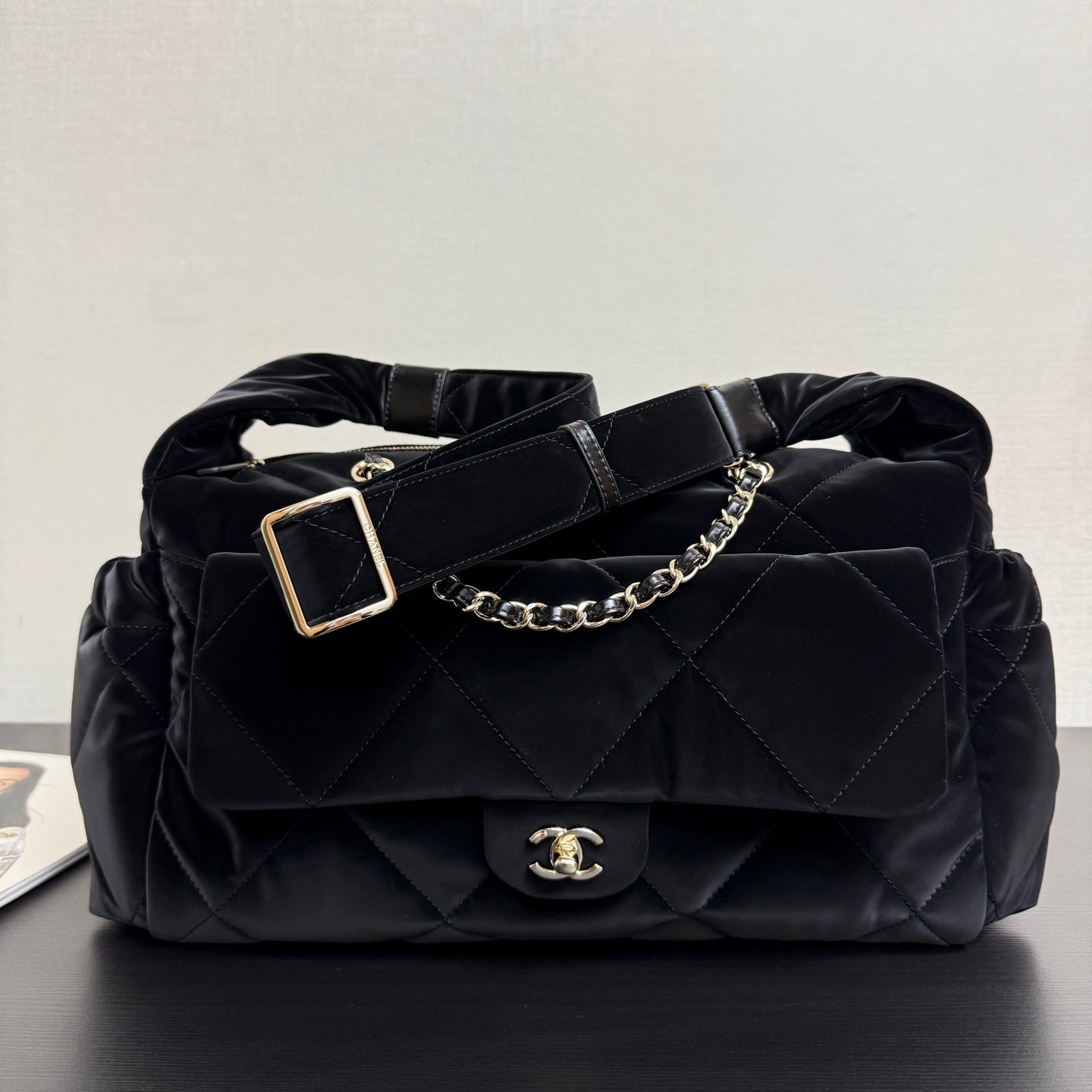Chanel 26 Bowling Maxi Bag 32 Black Velvet Effect Nylon