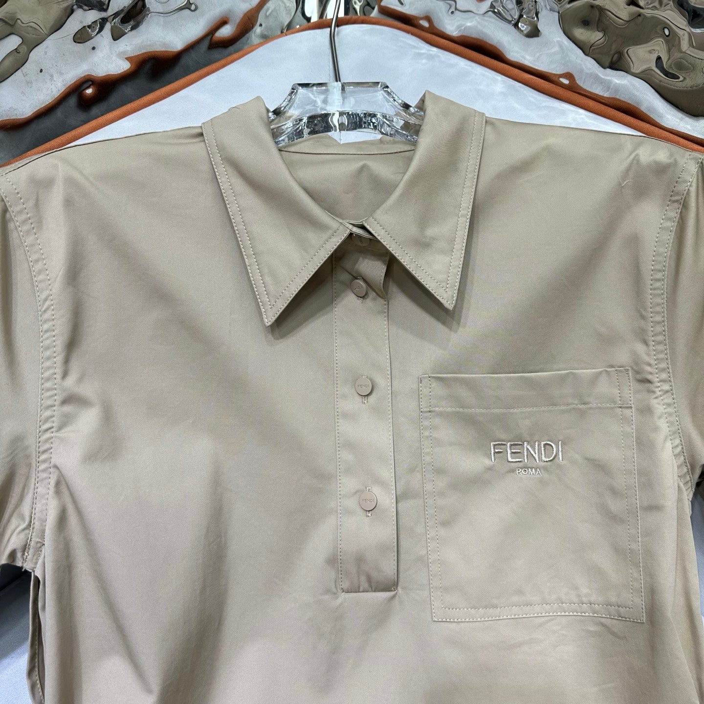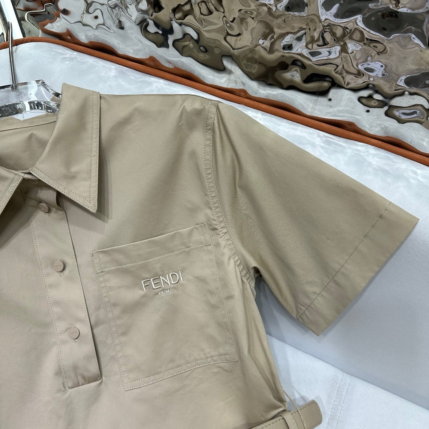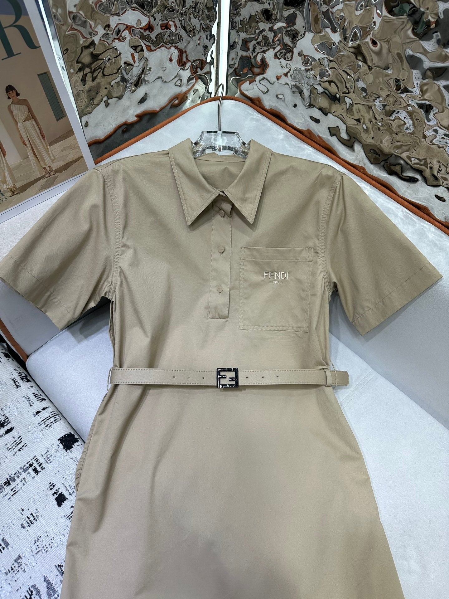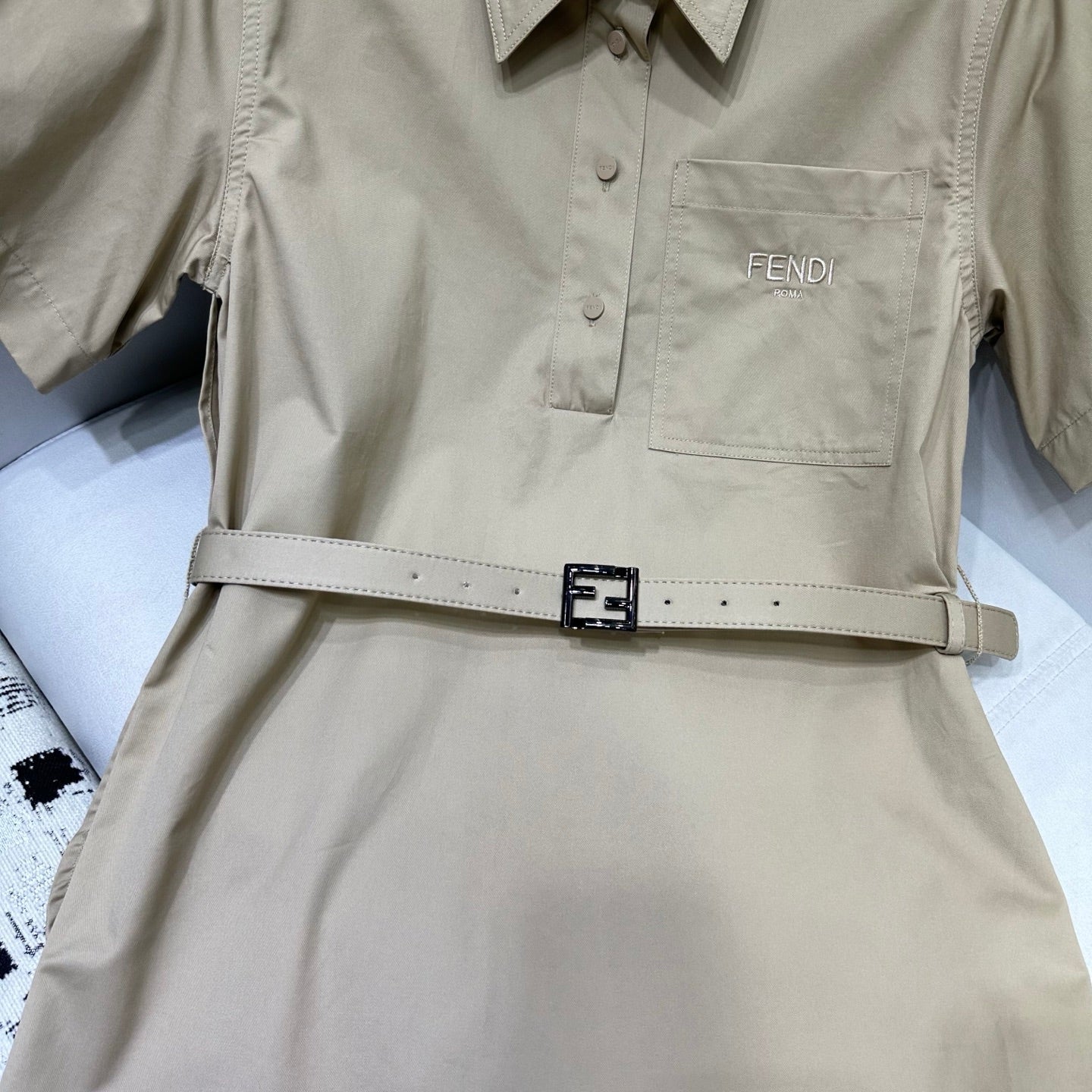 Fendi 25 Short-sleeved Dress Beige Cotton