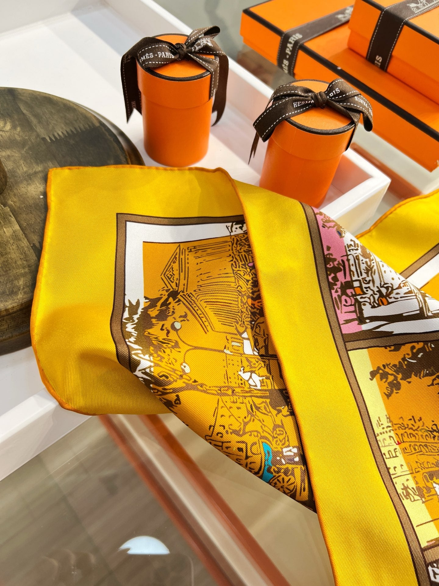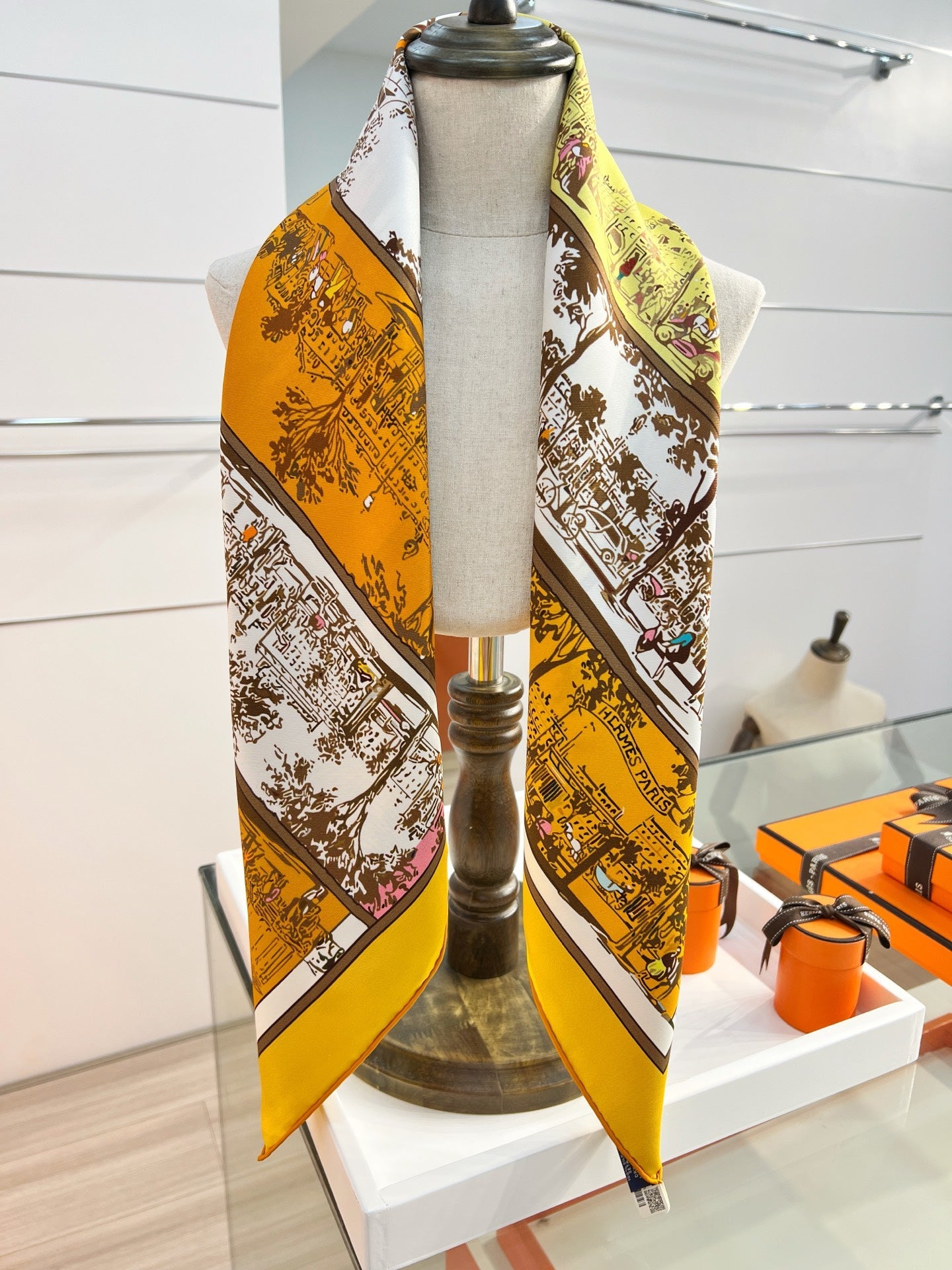 HM 26s Knitting Scarf 90 Yellow Brown Colorful Mulberry Silk 147544