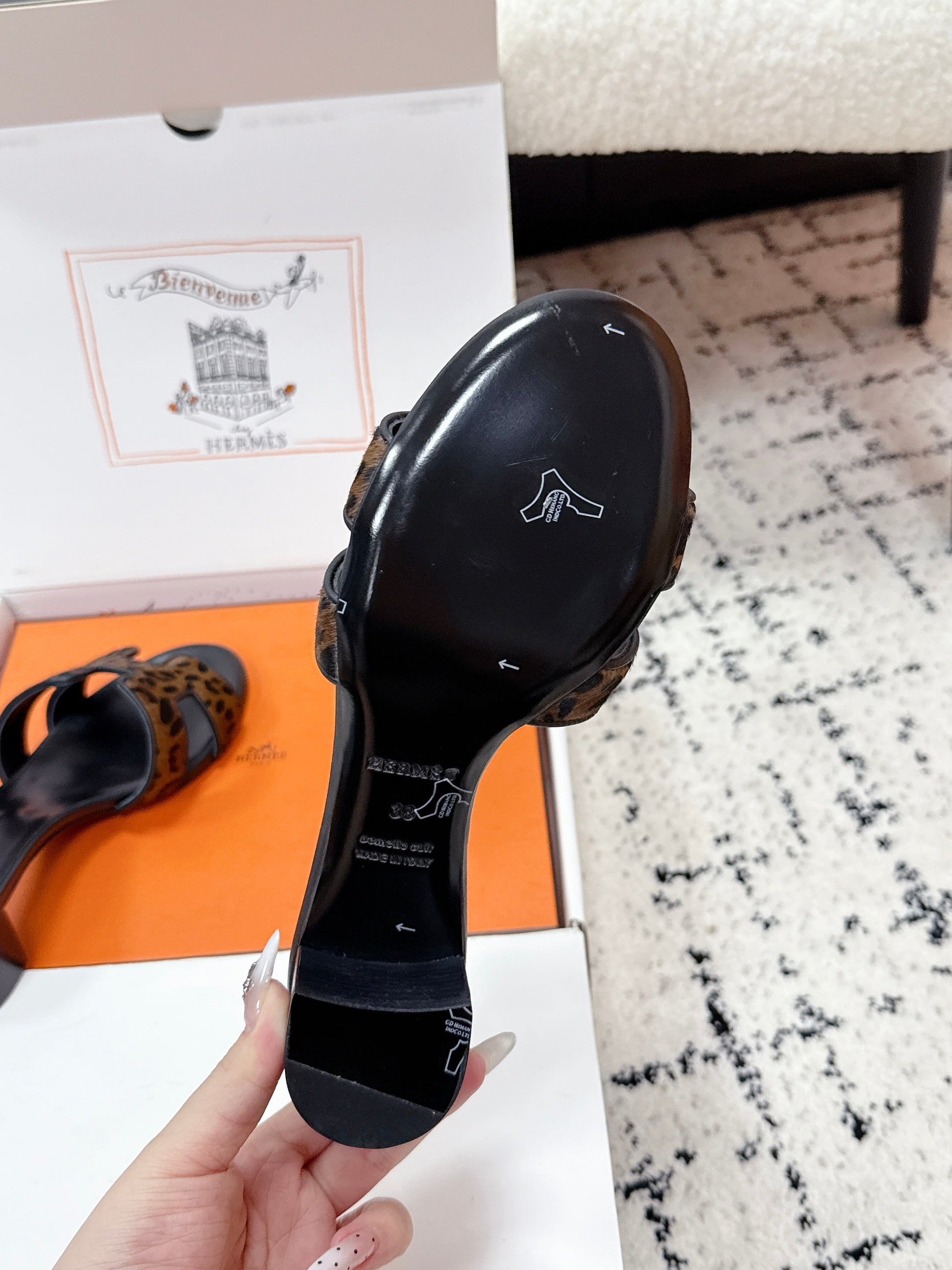 HM 26ss High-Heeled Sandals 50 Black Brown Cowhide 617228