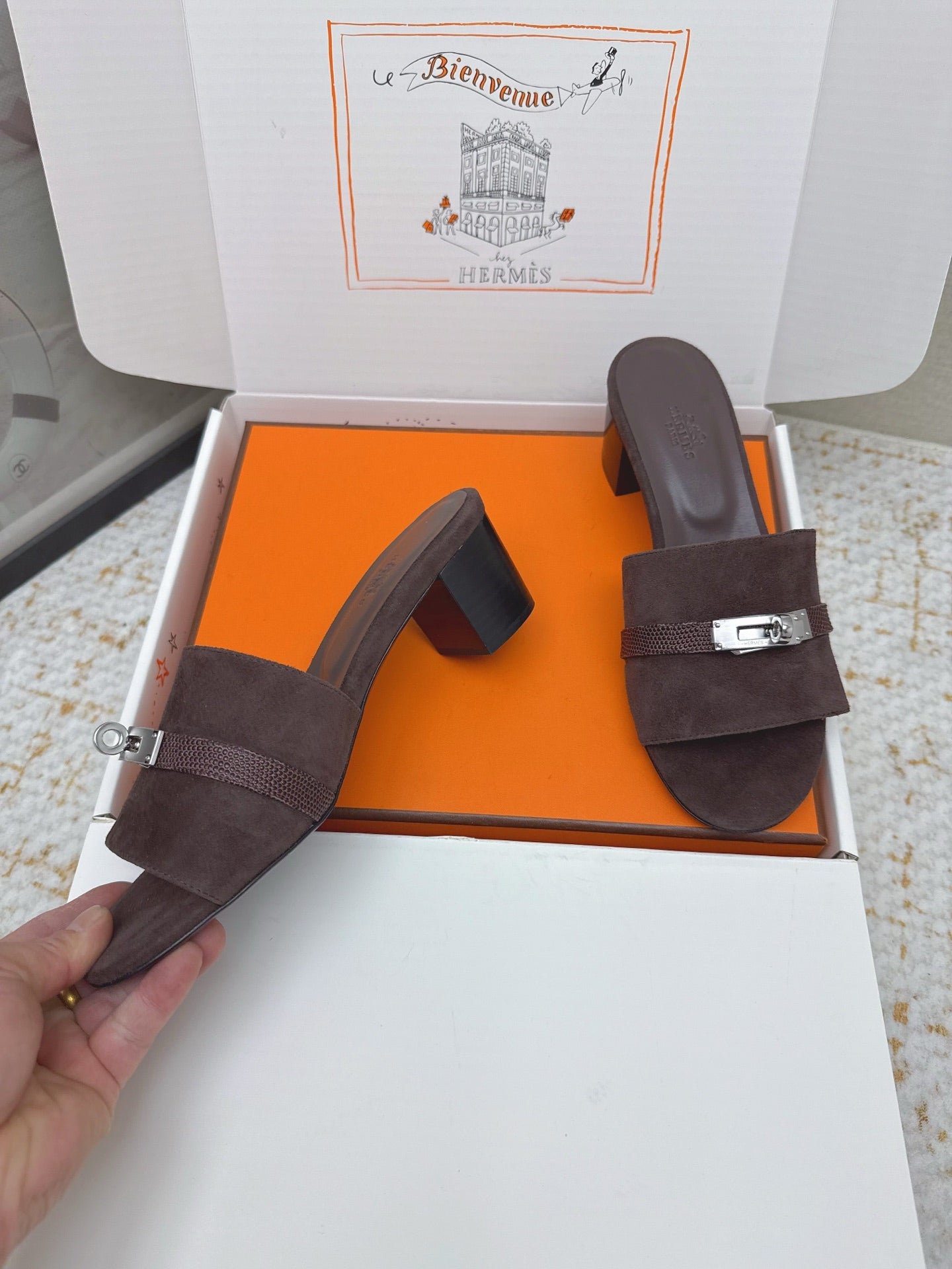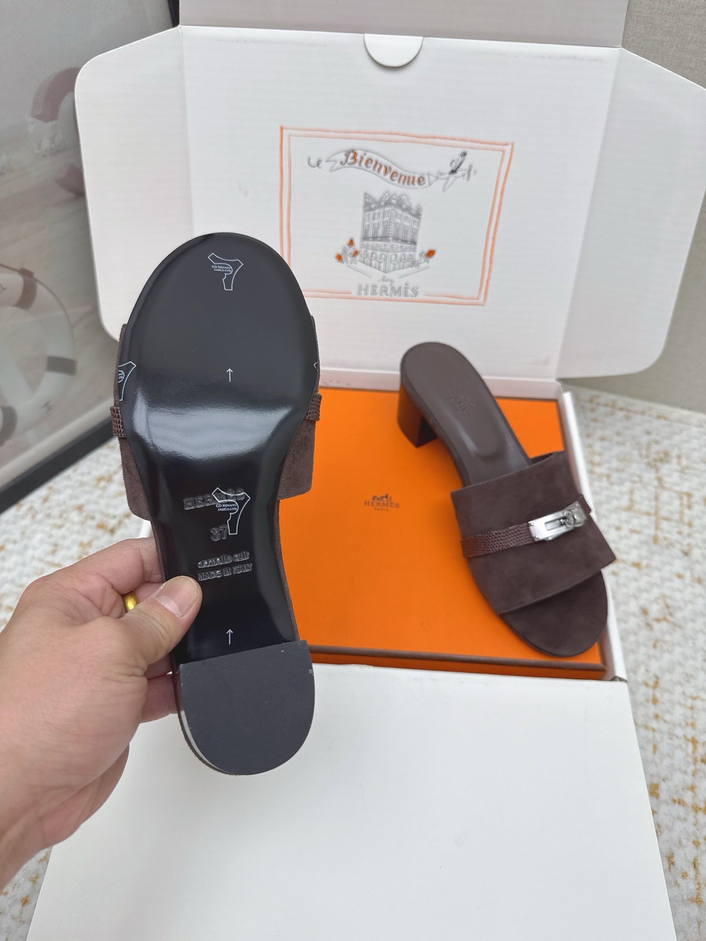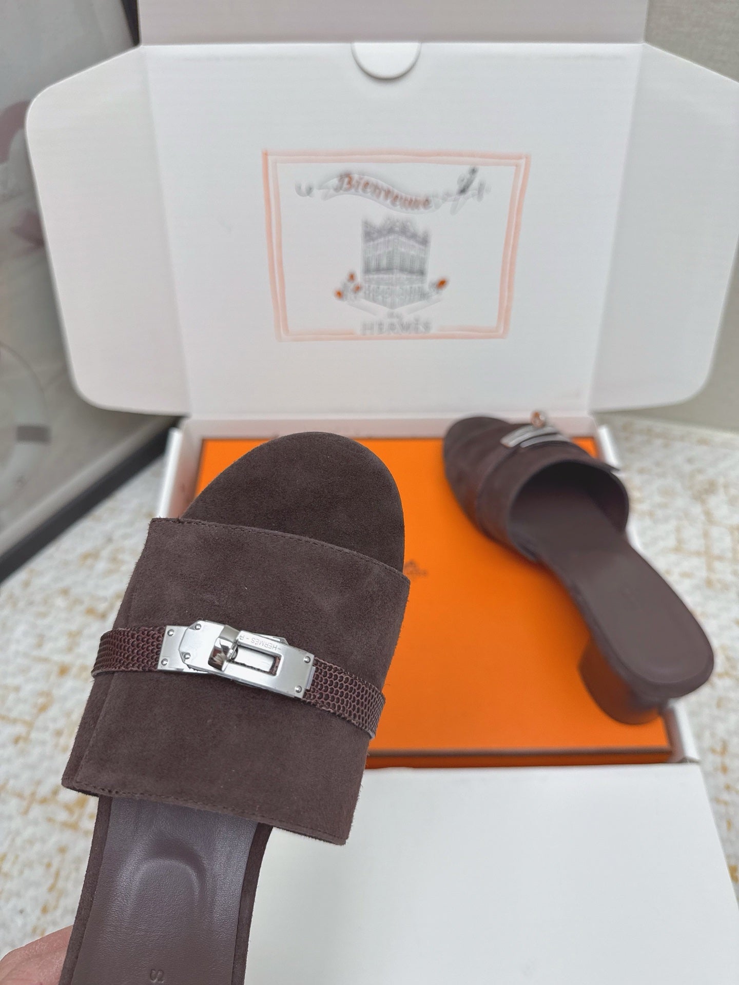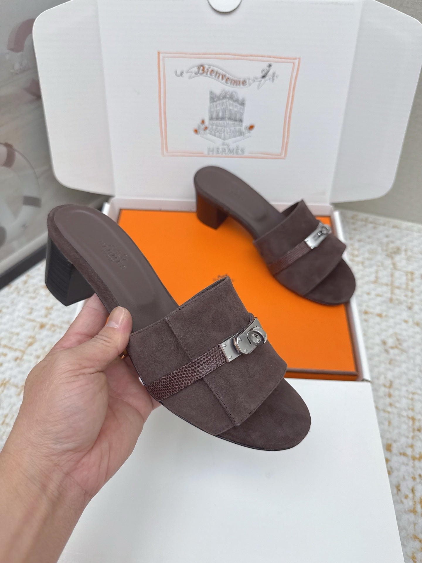 HM 26ss Oasis Sandals 50 Dark Brown Suede Cowhide 625182