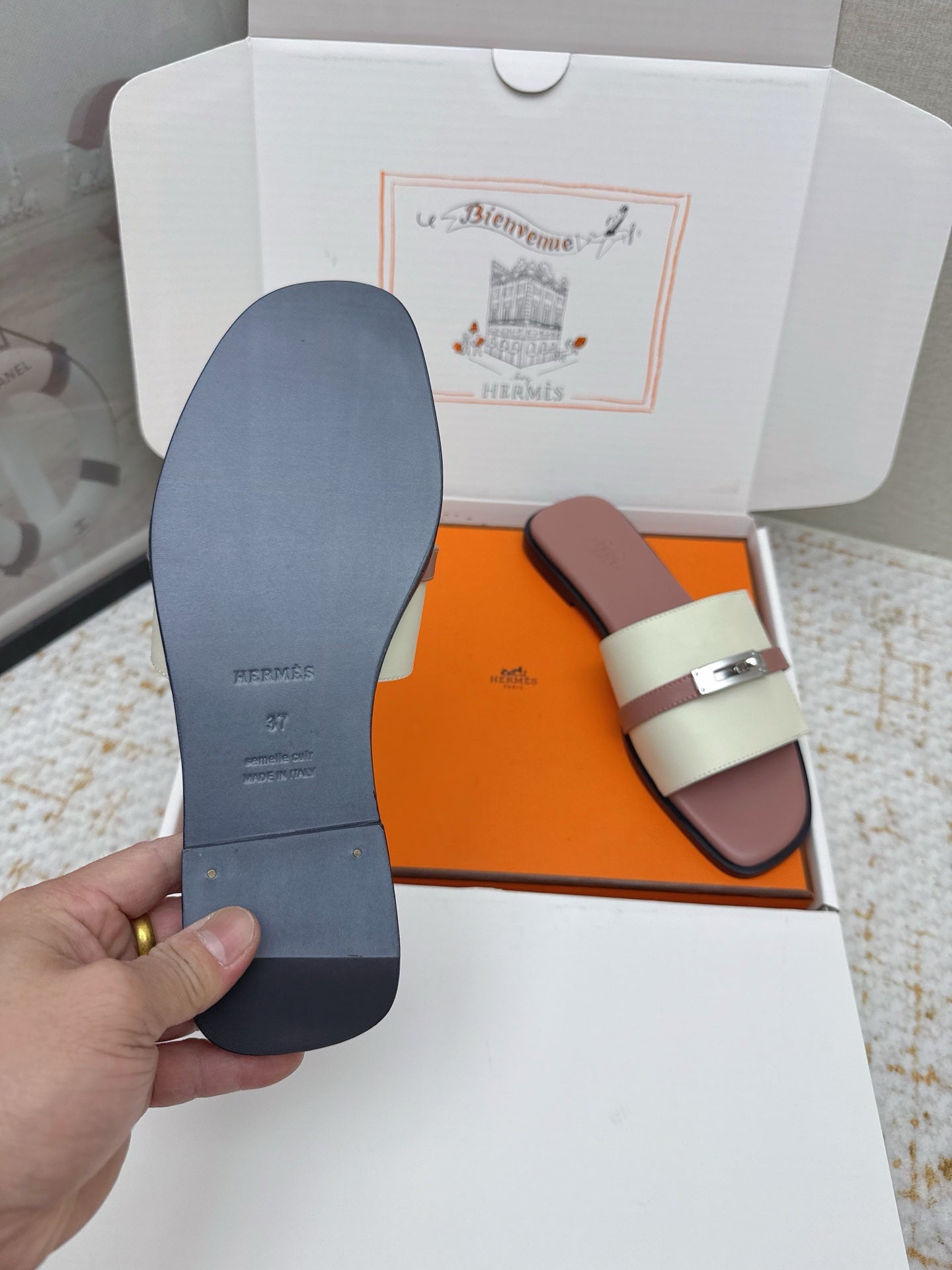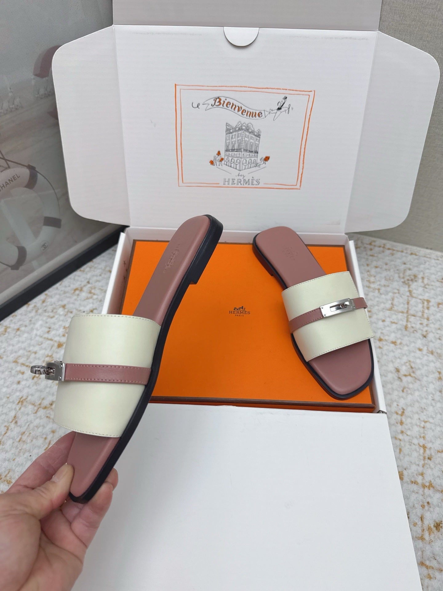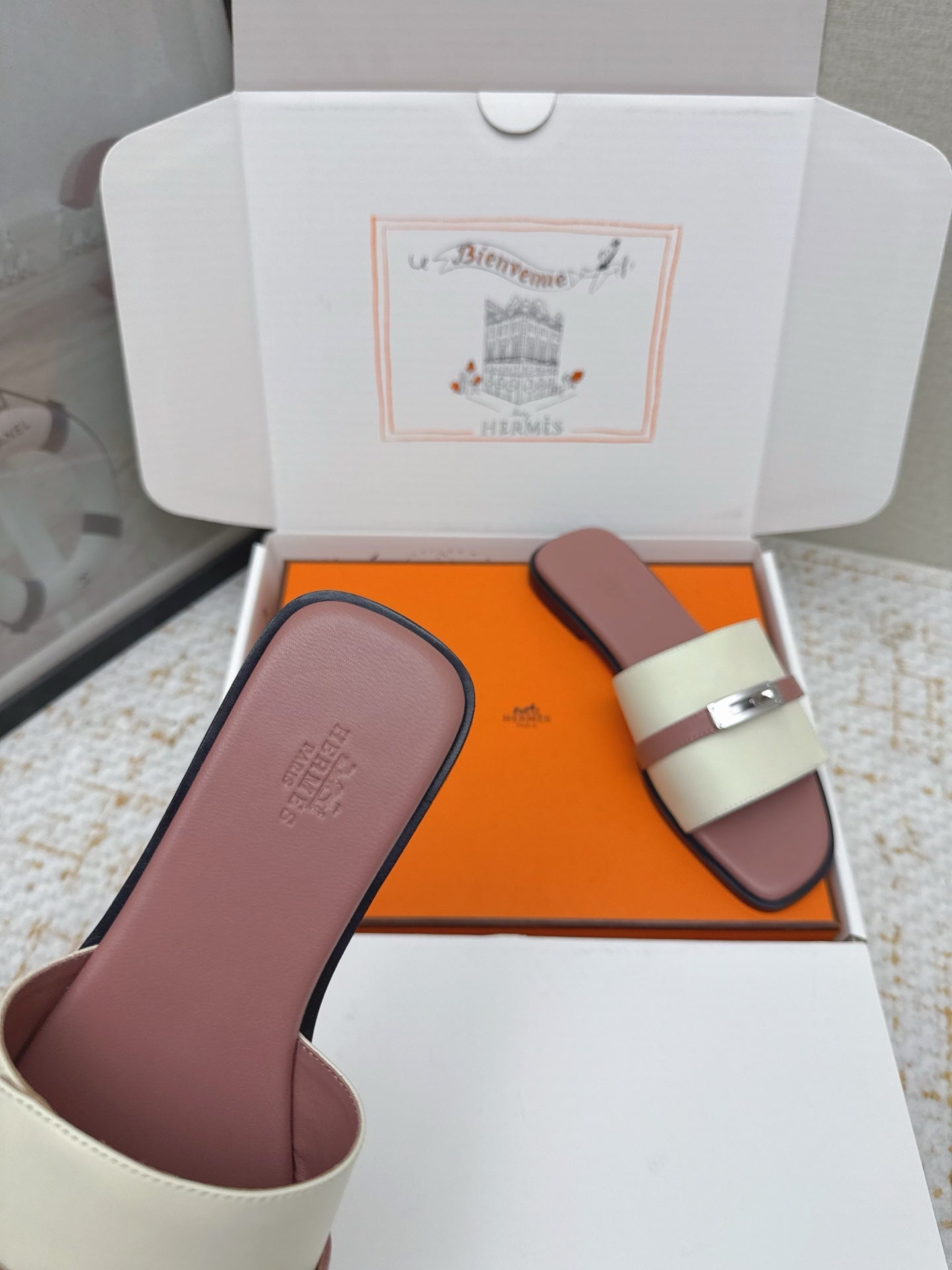 HM 26ss Oasis Sandals Dusty Rose Cream Sheepskin Sliver Buckle 625172