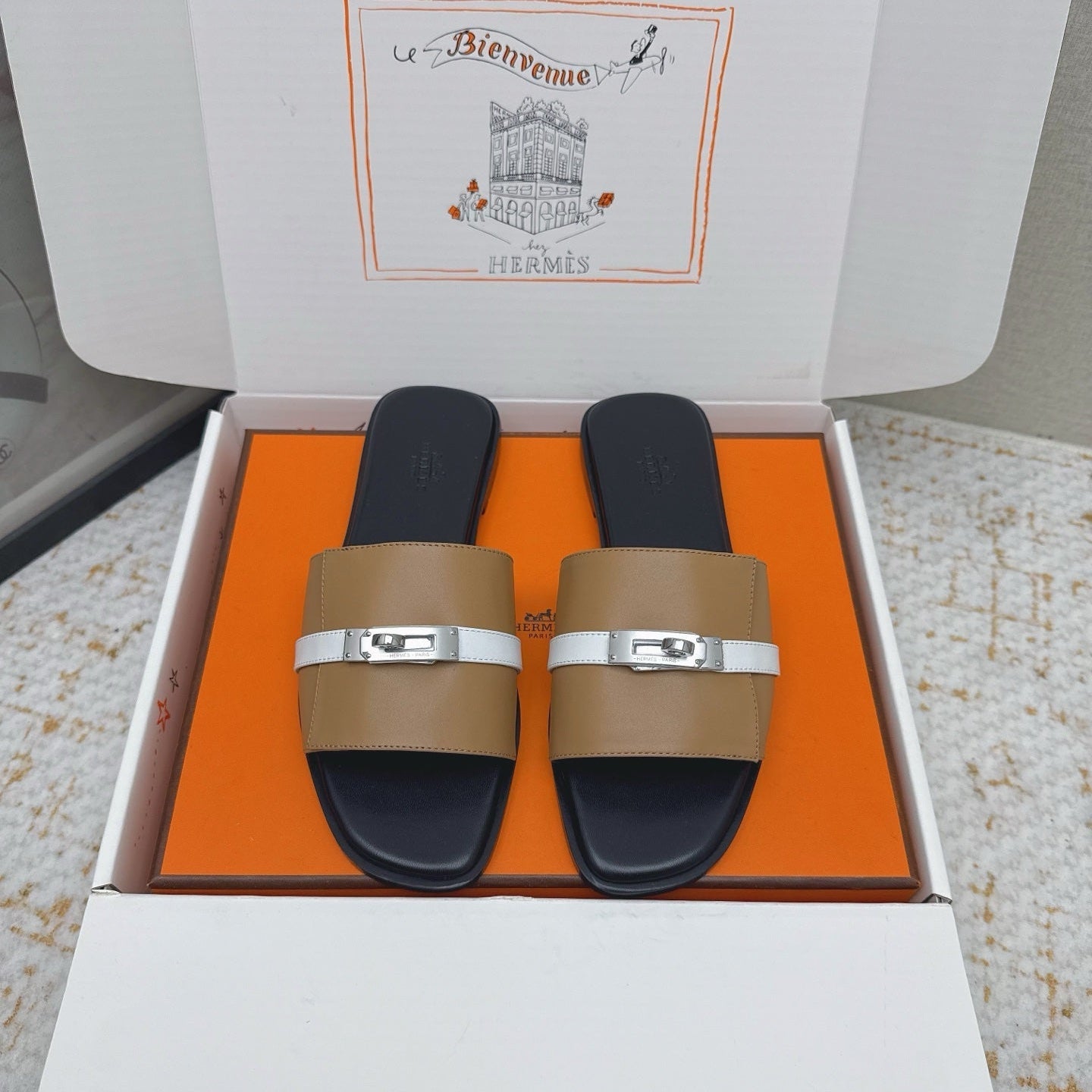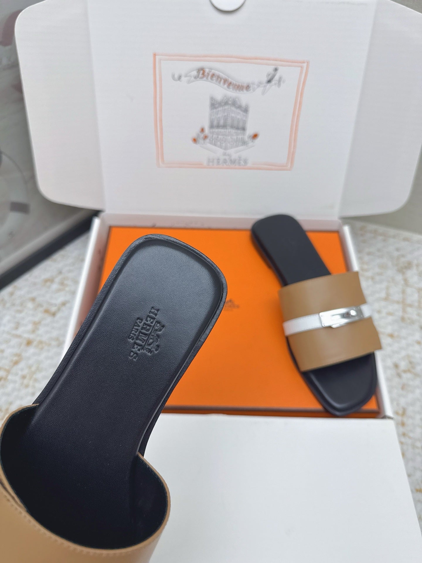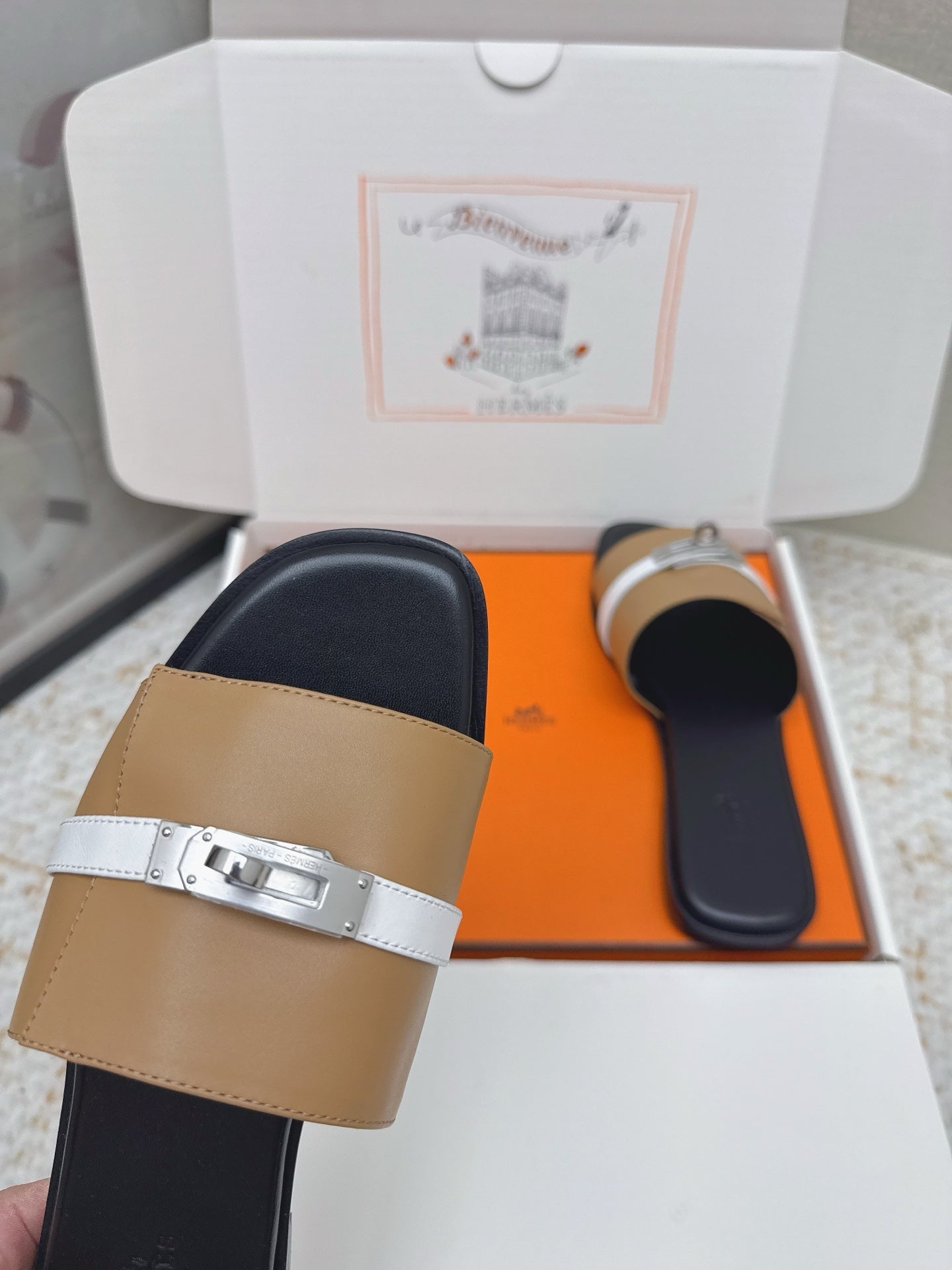 HM 26ss Oasis Sandals Tan Beige Sheepskin Sliver Buckle 625171
