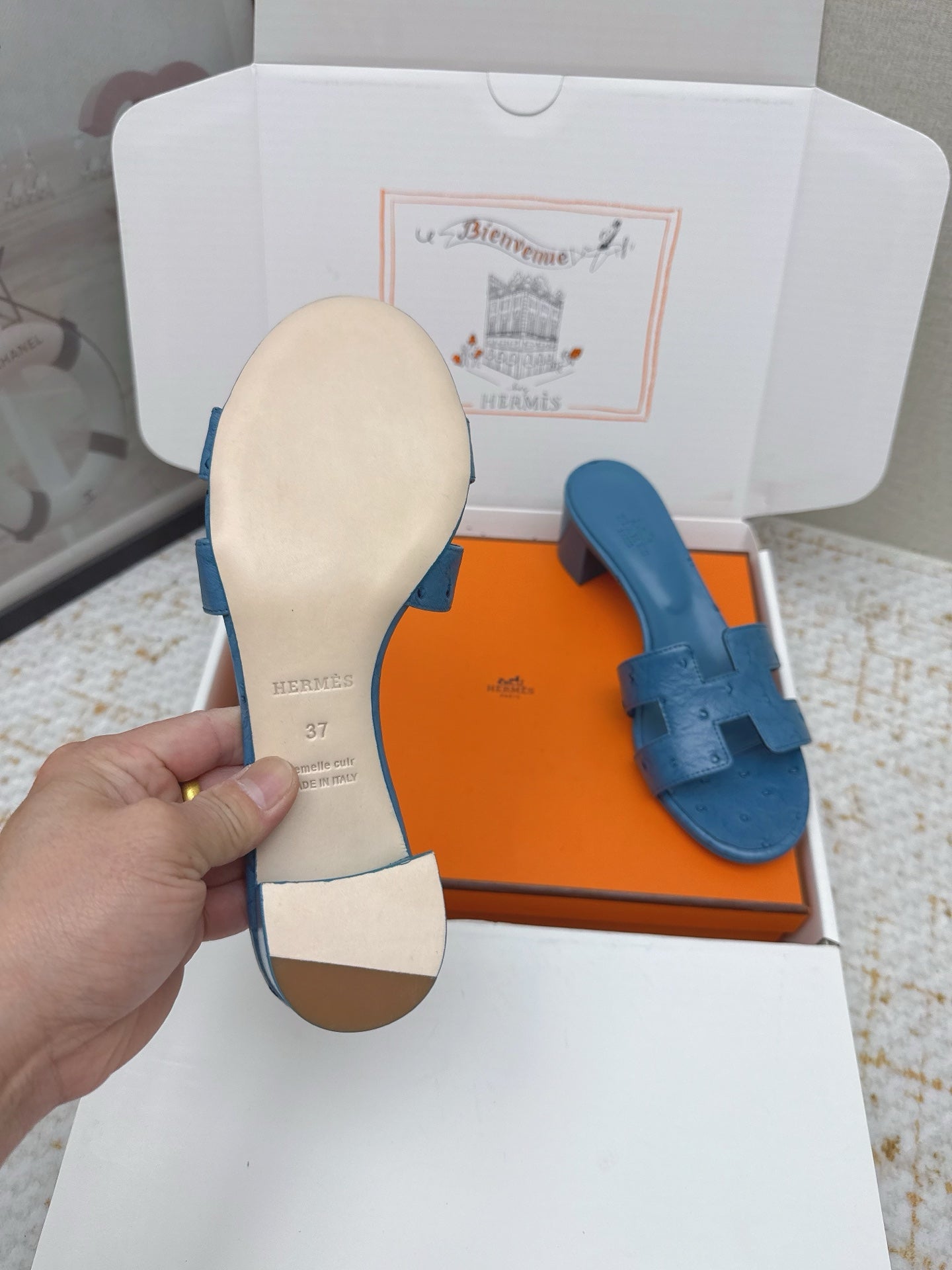 HM 26ss Oran Sandals 50 Blue Ostrich Leather 625127