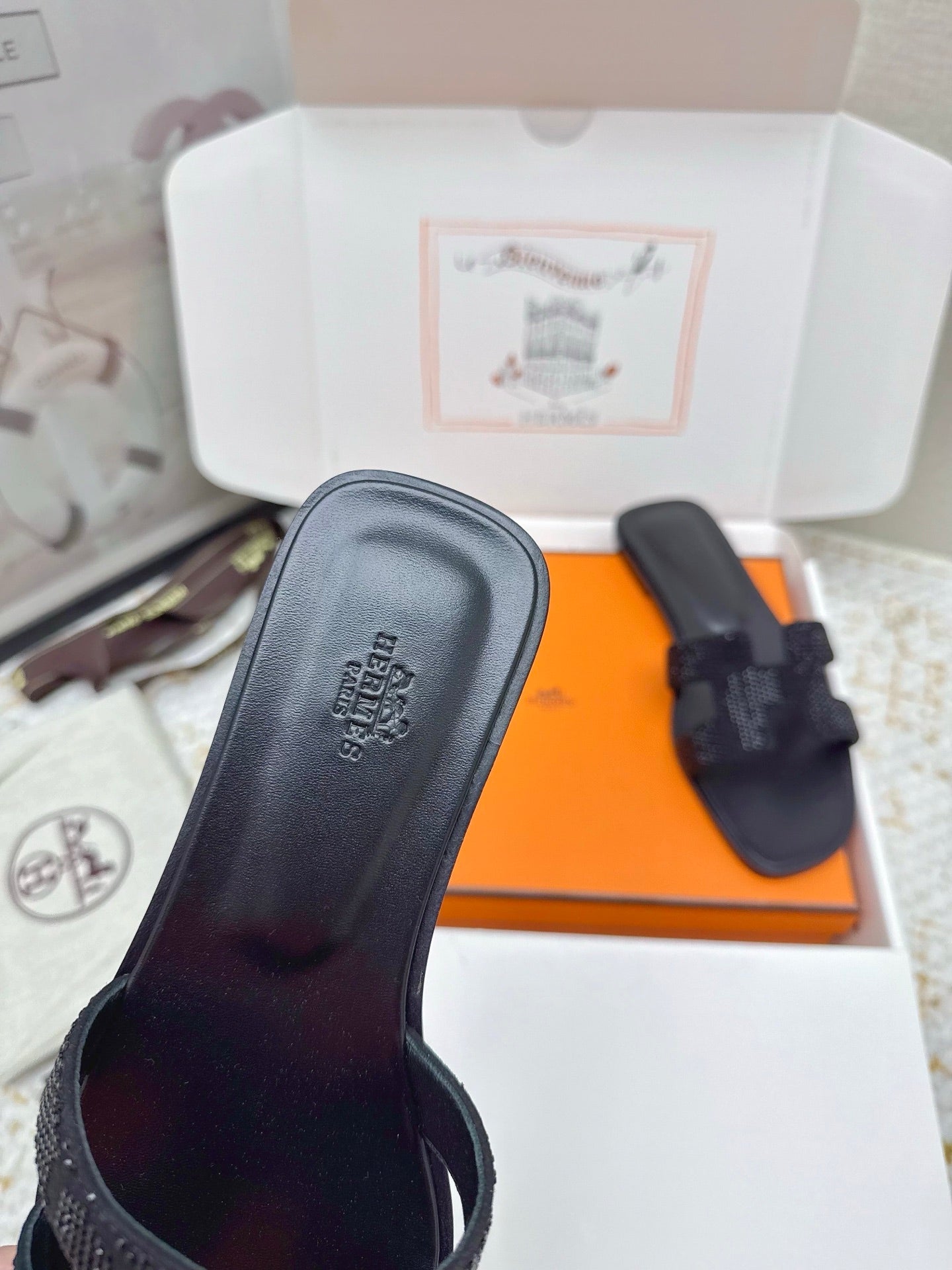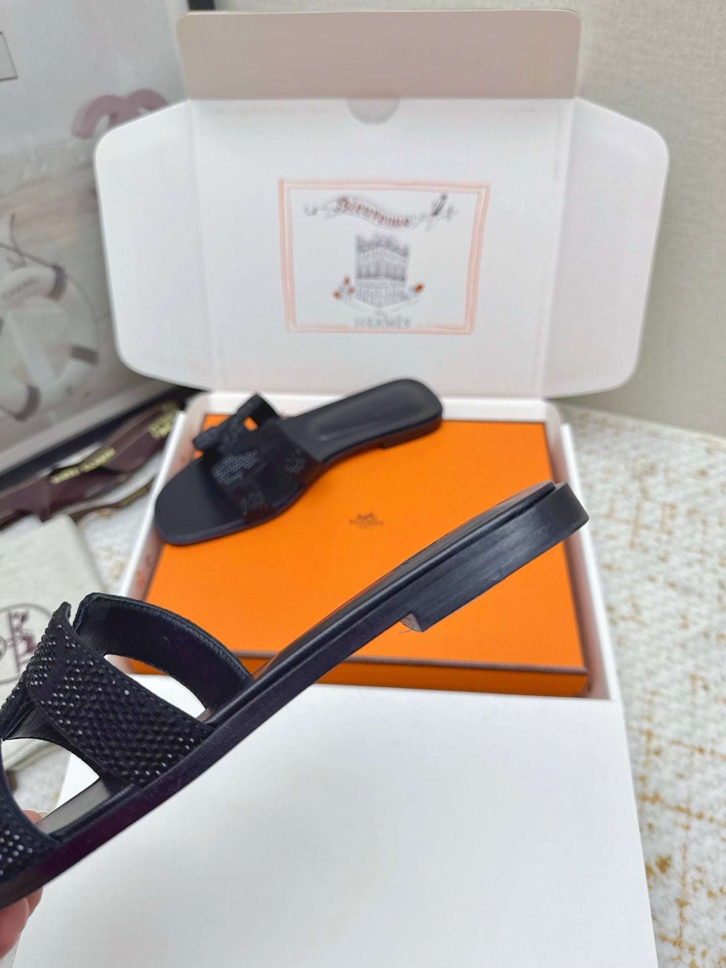HM 26ss Oran Sandals Black Rhinestone Cowhide 625241