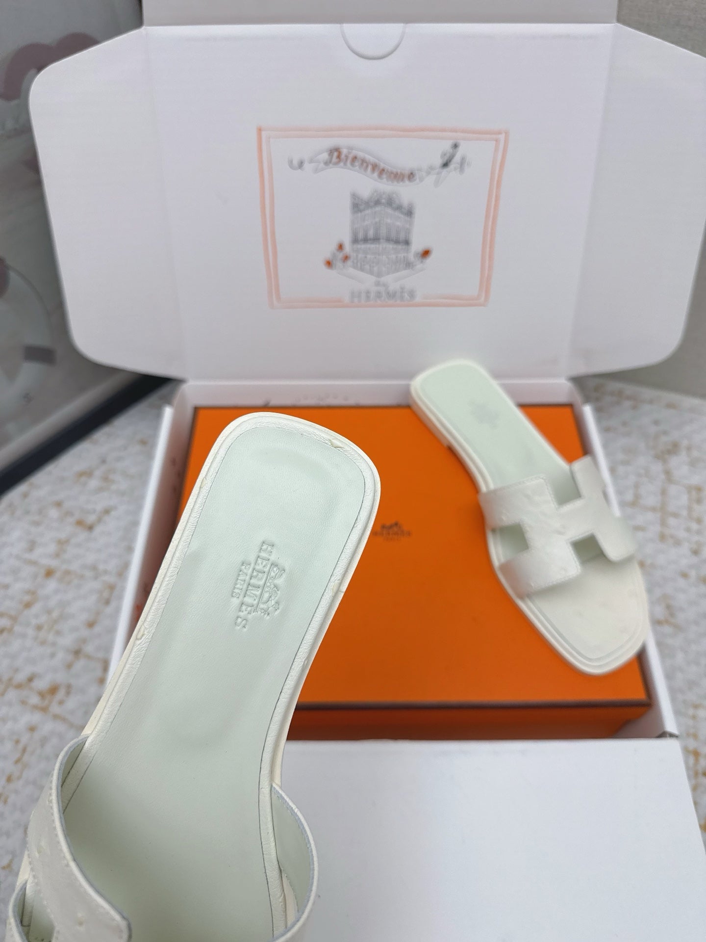 HM 26ss Oran Sandals Craie Ostrich Leather 625097