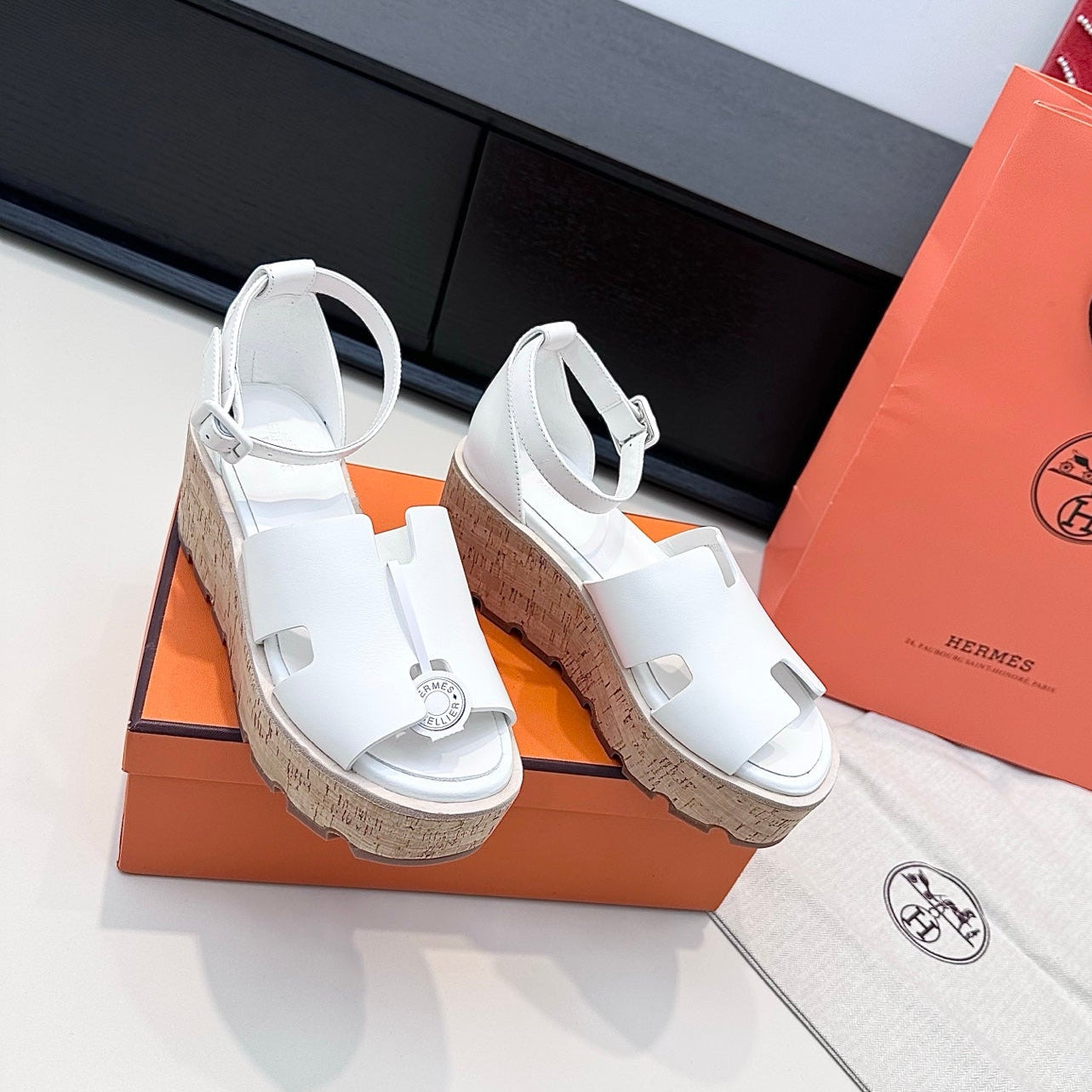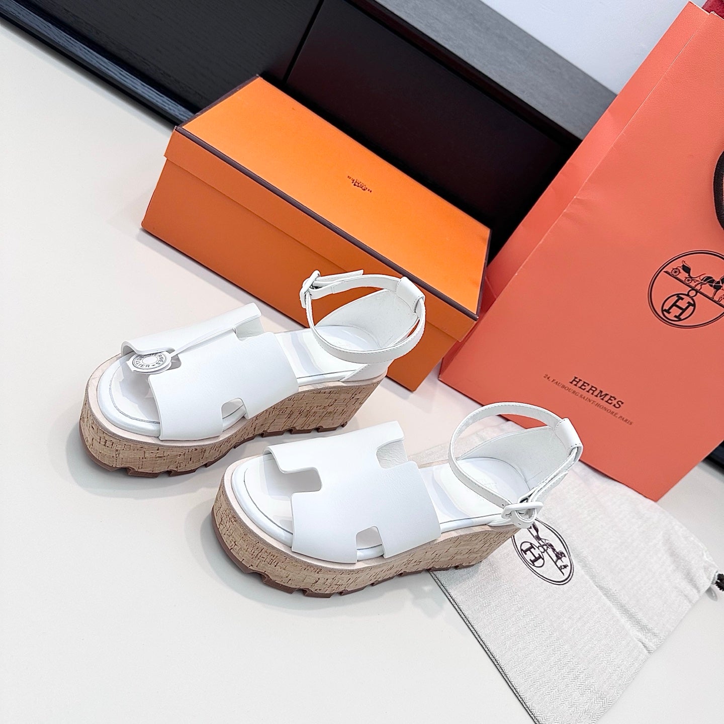 HM 26ss Platform Wedge Sandals 70 White Cowhide 622762