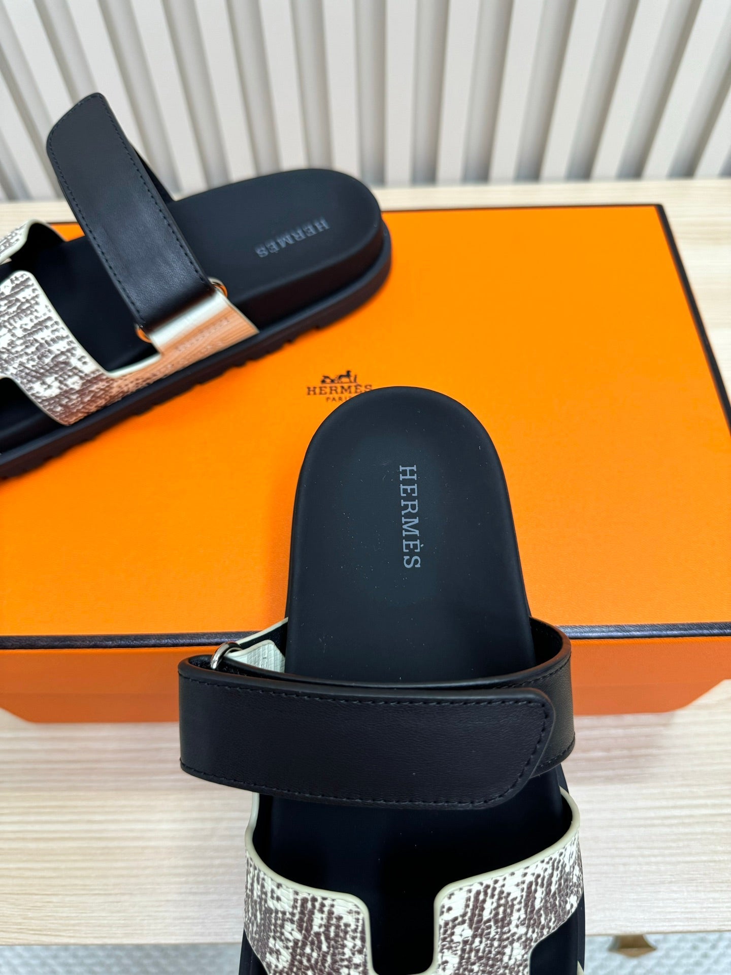 HM 26ss Slippers White Gray Black Suede Leather 618578