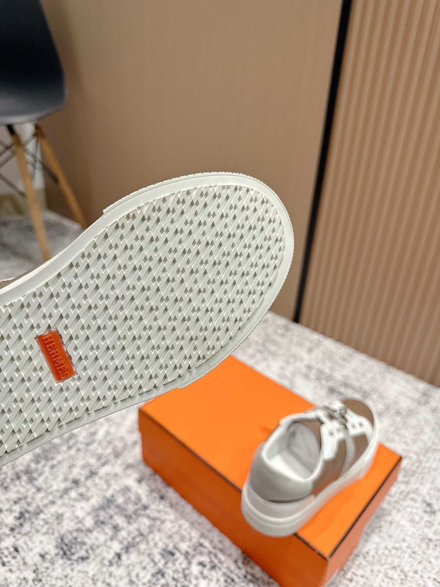 HM Casual Sneakers Sliver Buckle Taupe With White Leather