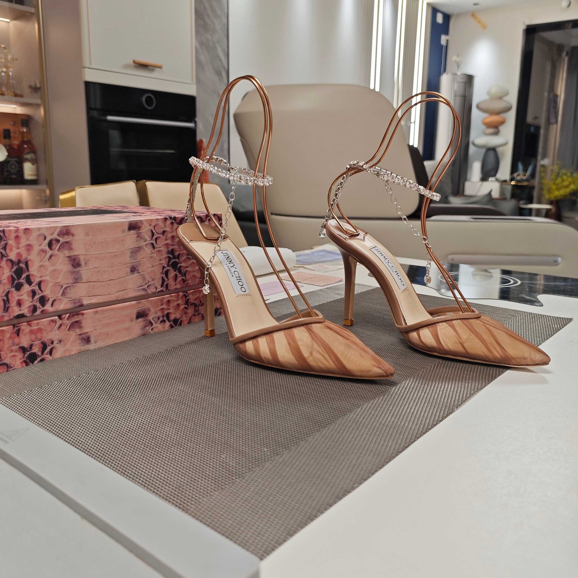 - Material: Transparent tulle with Cowhide