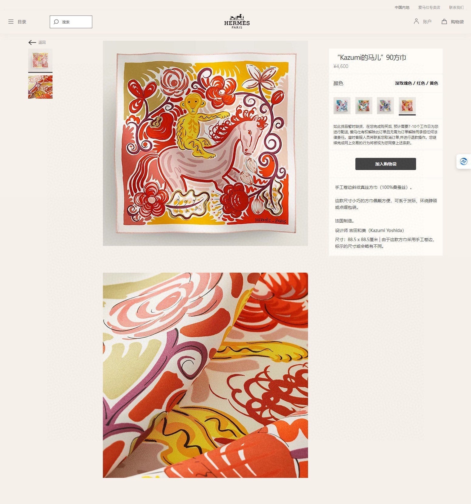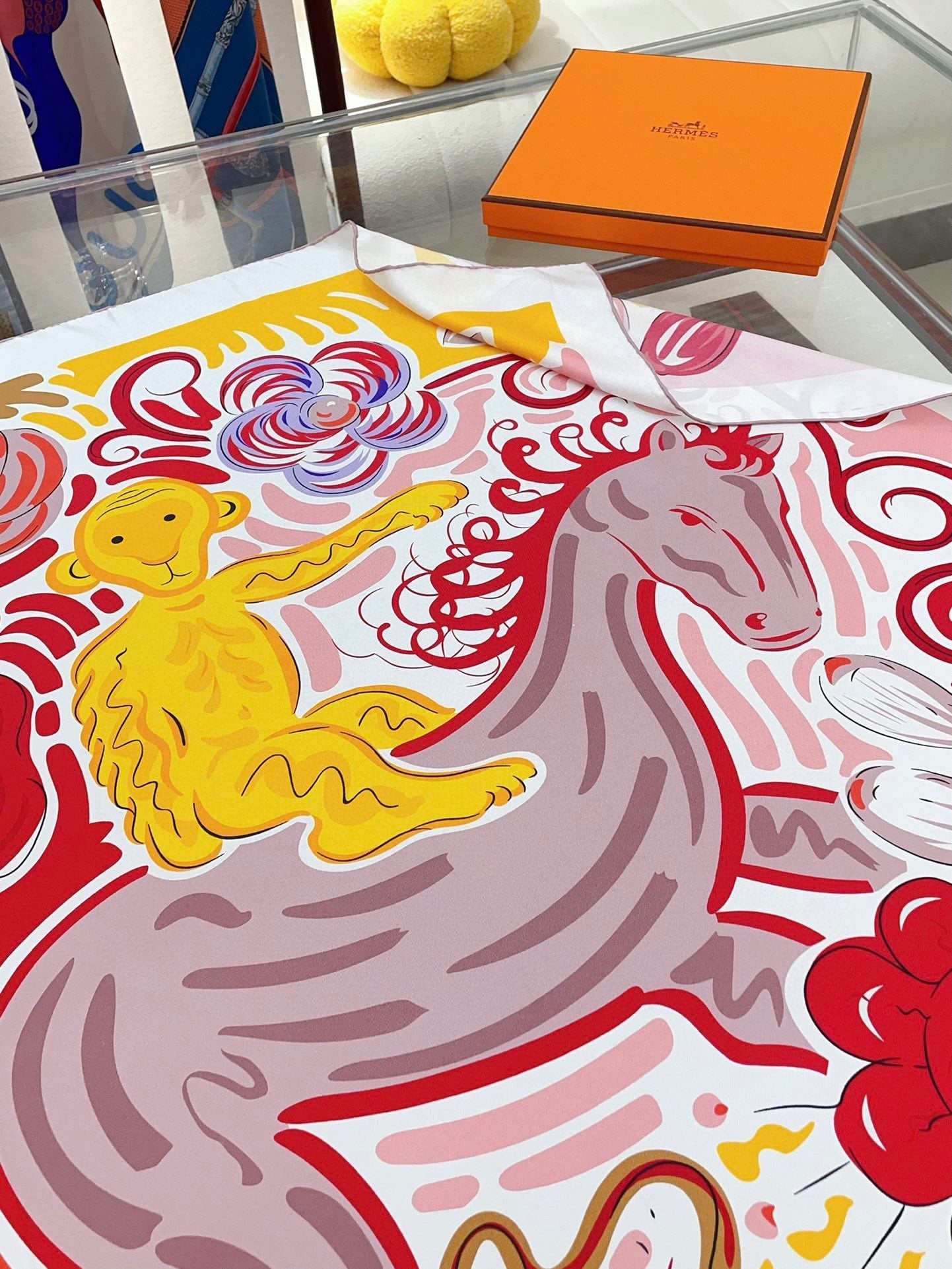 Le Cheval De Kazumi Scarf 90 CM Red Colorful Silk Twill 347388