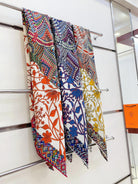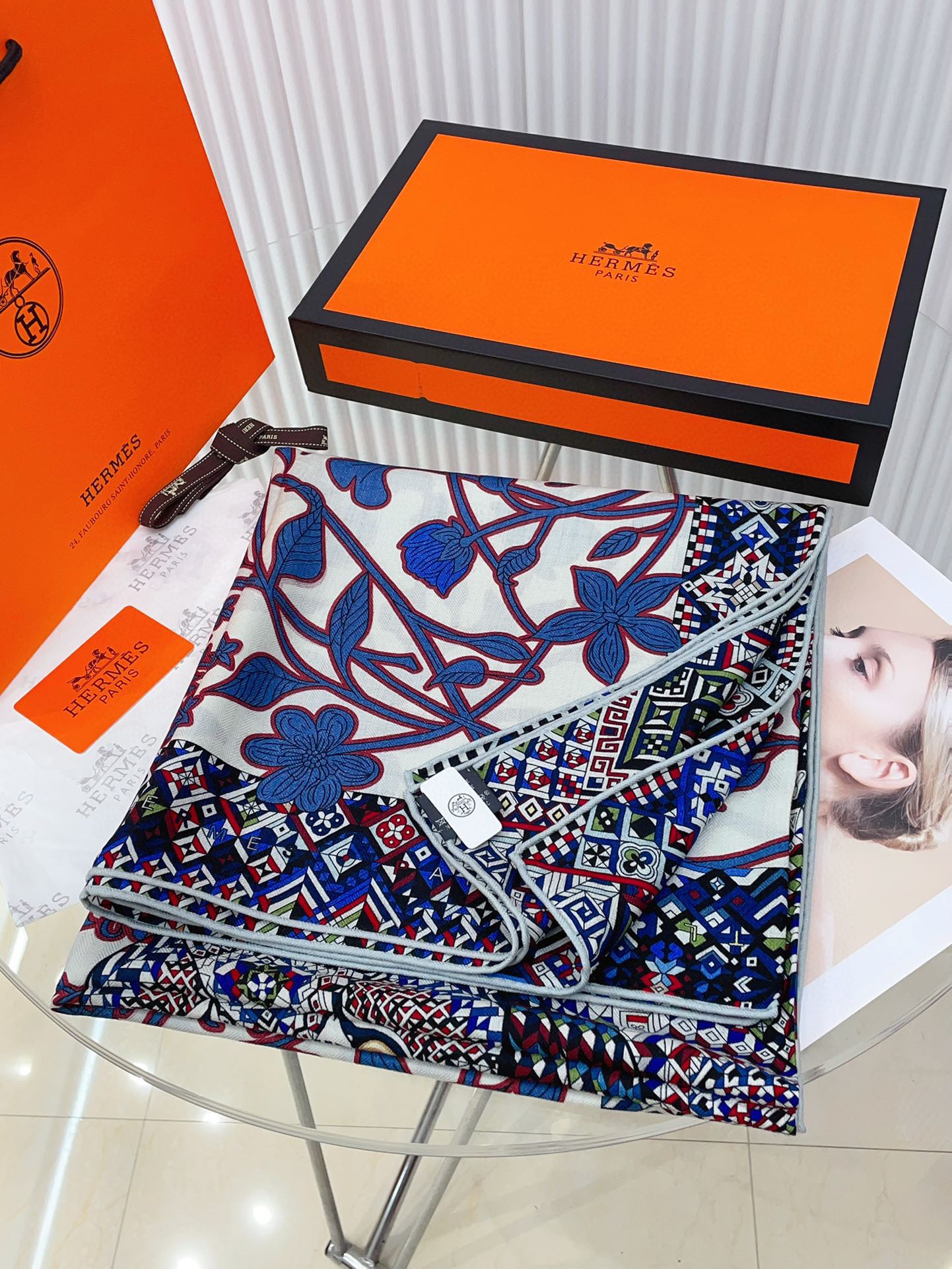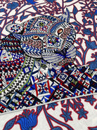 Le Jaguar Et Le Colibri Shawl 135 CM Blue Colorful Cashmere And Silk 357902