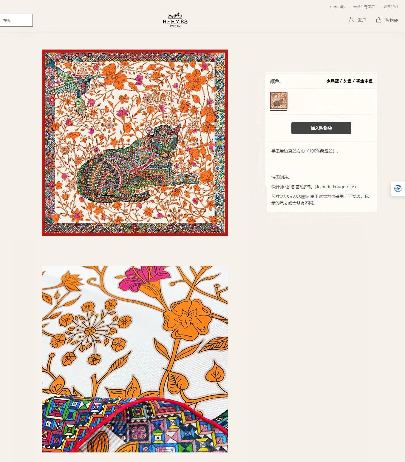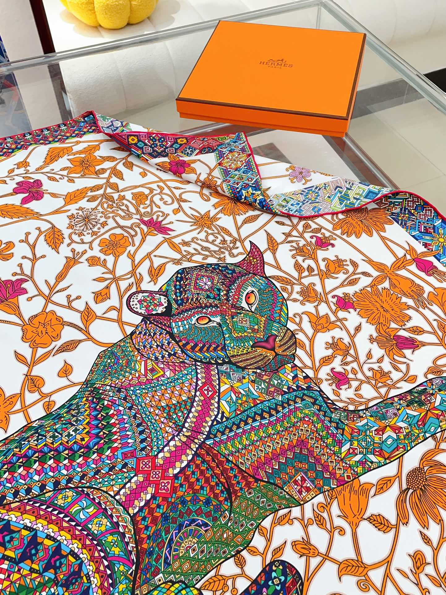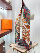 Le Jaguar Et Le Colibri Shawl 90 CM In Orange Colorful Silk Twill 274209