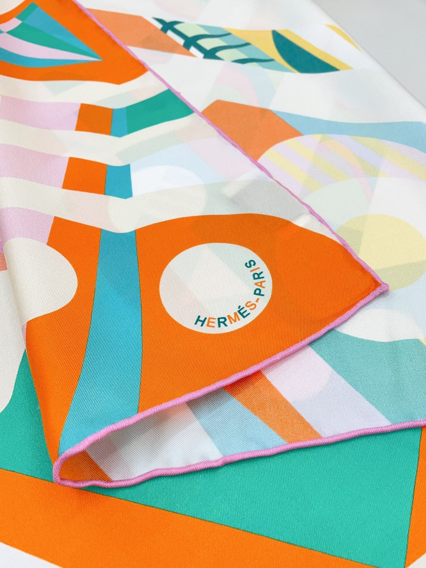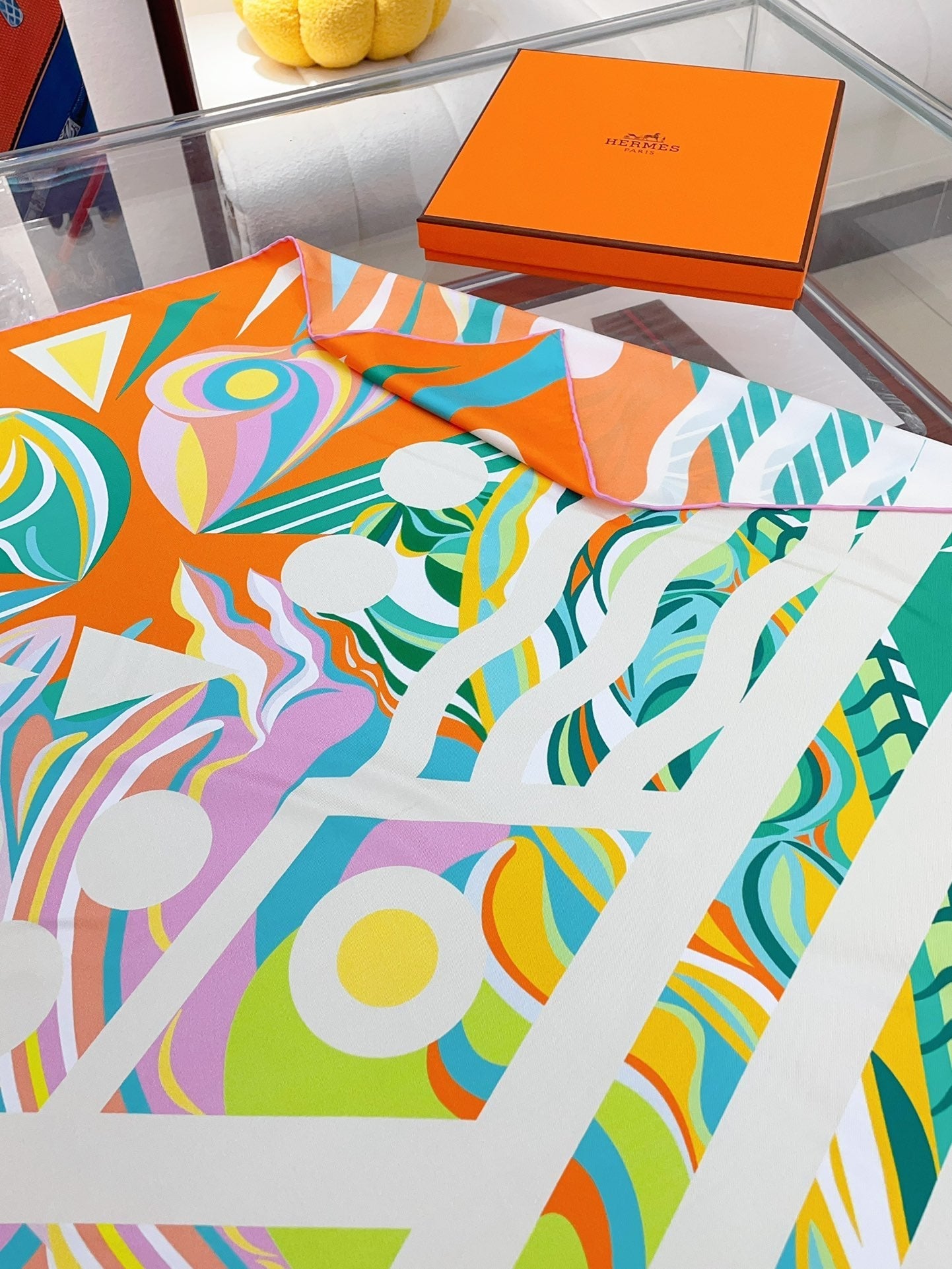 Le Reve De Julia Scarf 90 CM In Orange Colorful Silk Twill 198577