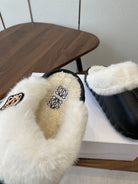 Loewe slippers black leather wool 477788