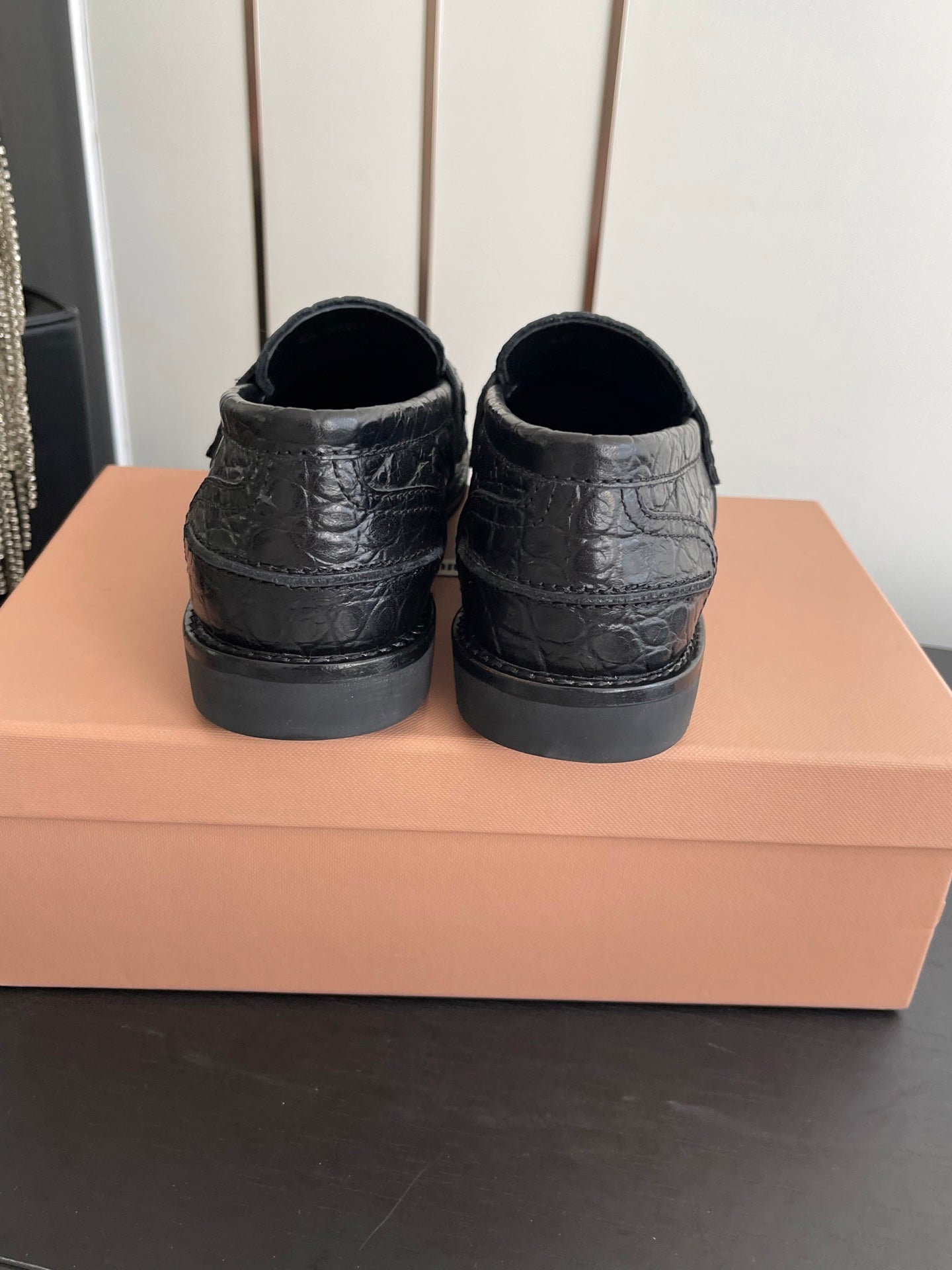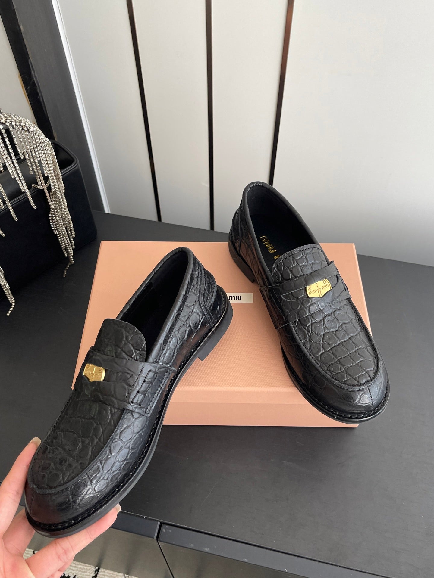 MIU 26 Casual Loafers Black Crocodile Embossed Calfskin 631625