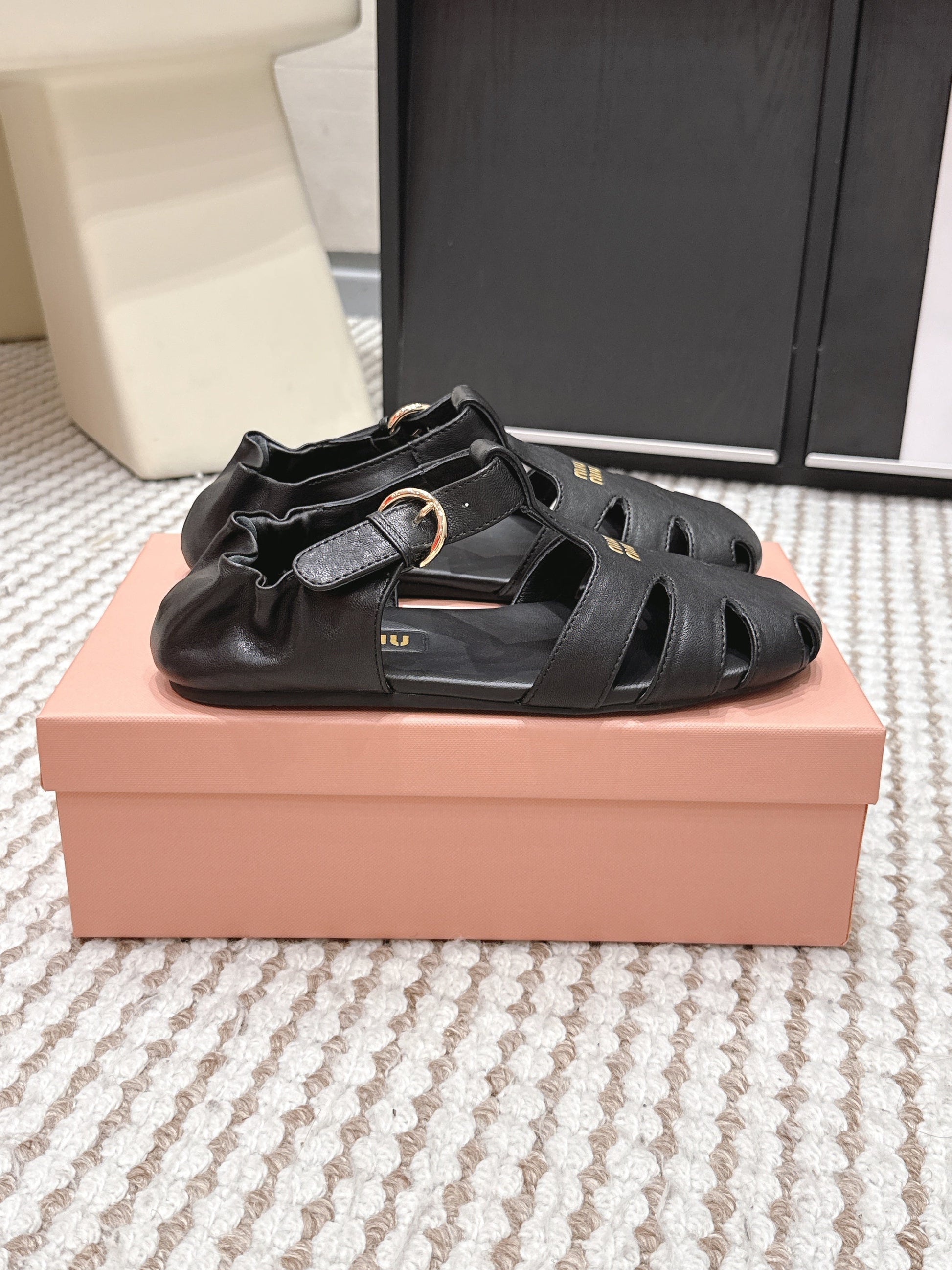 MIU 26 Roman Sandals Black Leather 632325