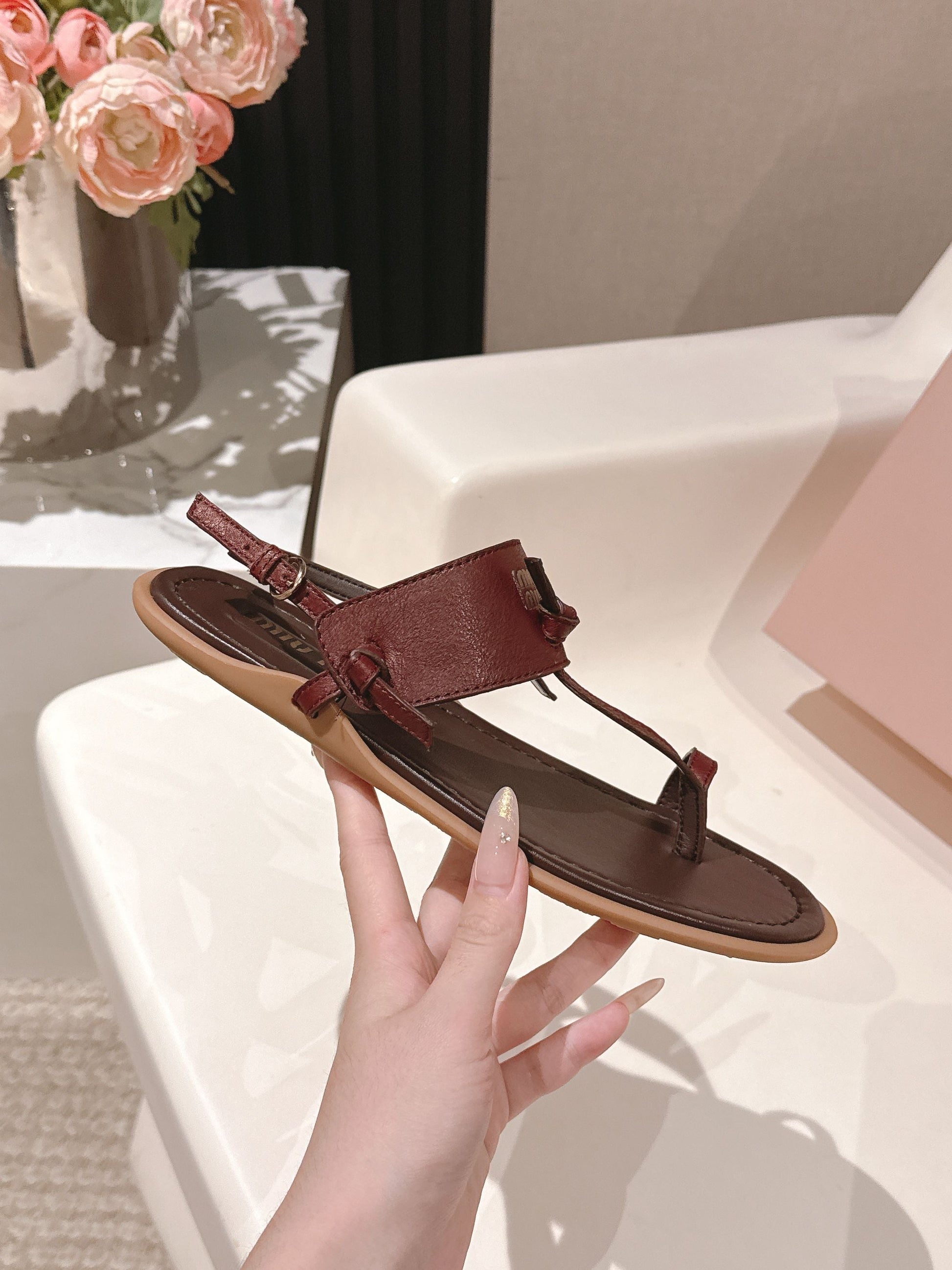 Miu Miu 2026 Sandal with Strap Red Chocolate Leather 620680