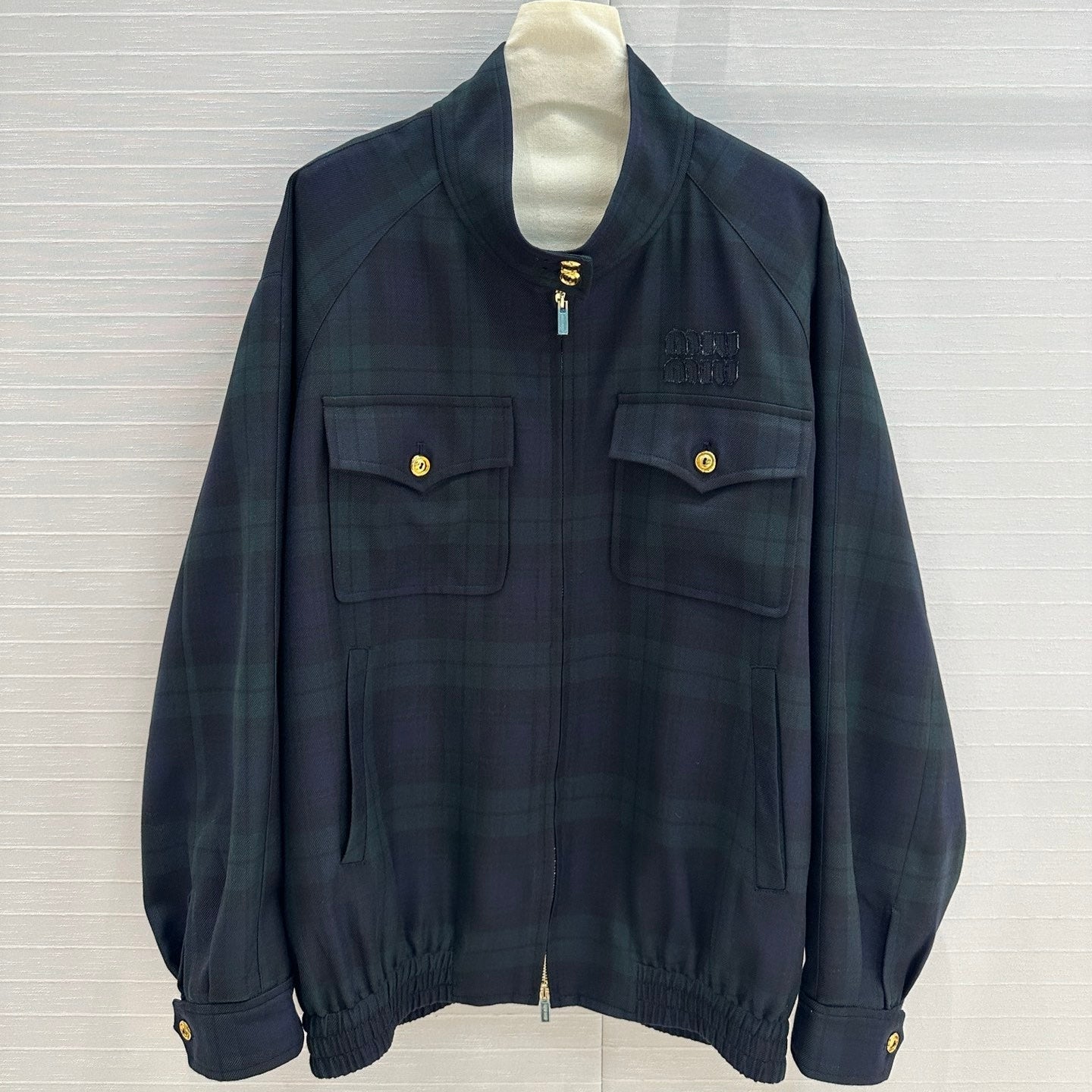 Miu Miu Plaid Drop Shoulder Jacket Green Blue Wool