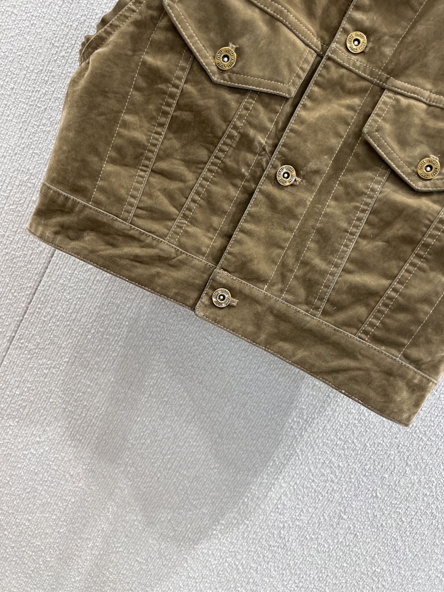 Miumiu 2026 Denim Short Vest Jacket Brown Cotton