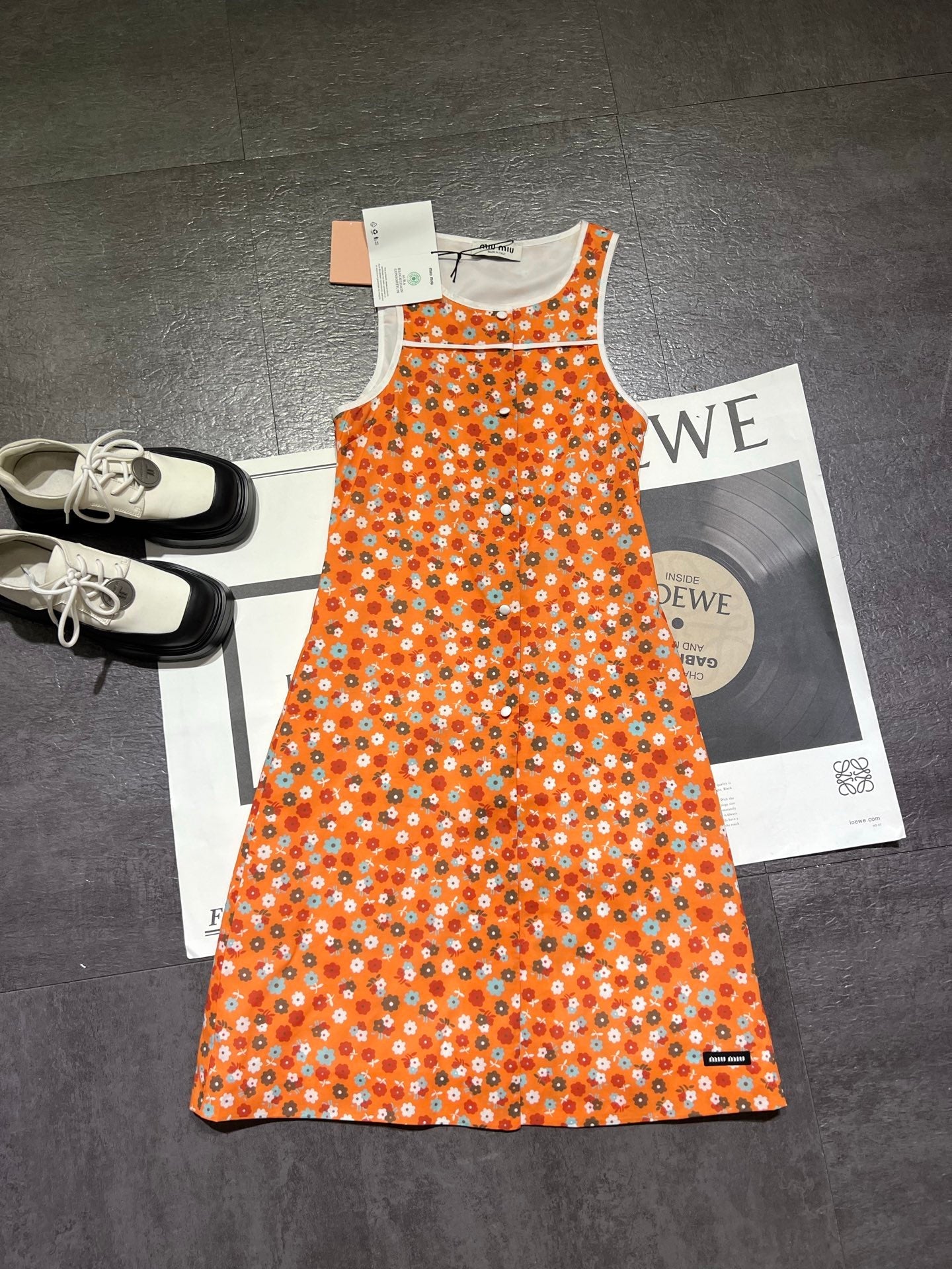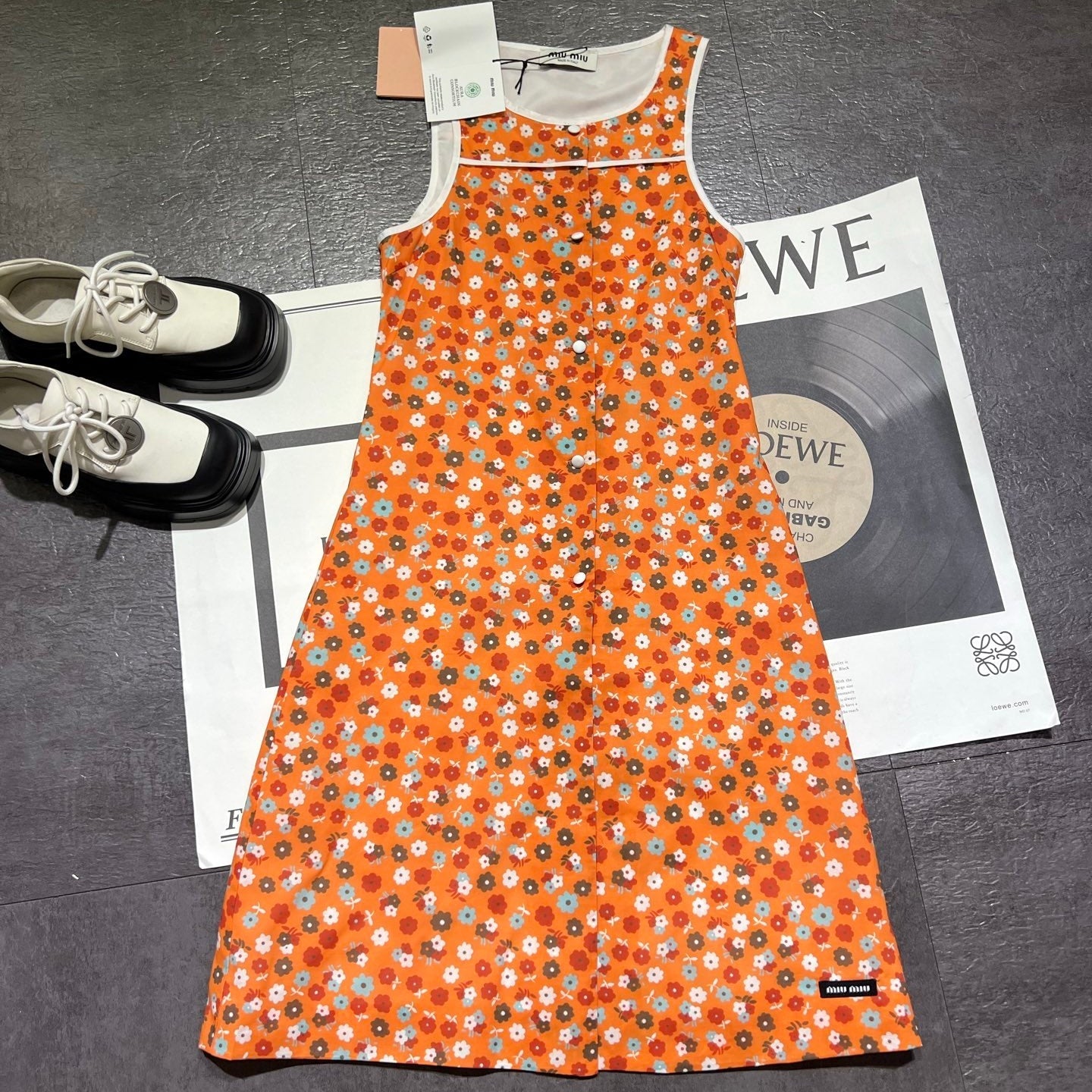 Miumiu 2026 Flower Dress Orange mix Colors Cotton 187754