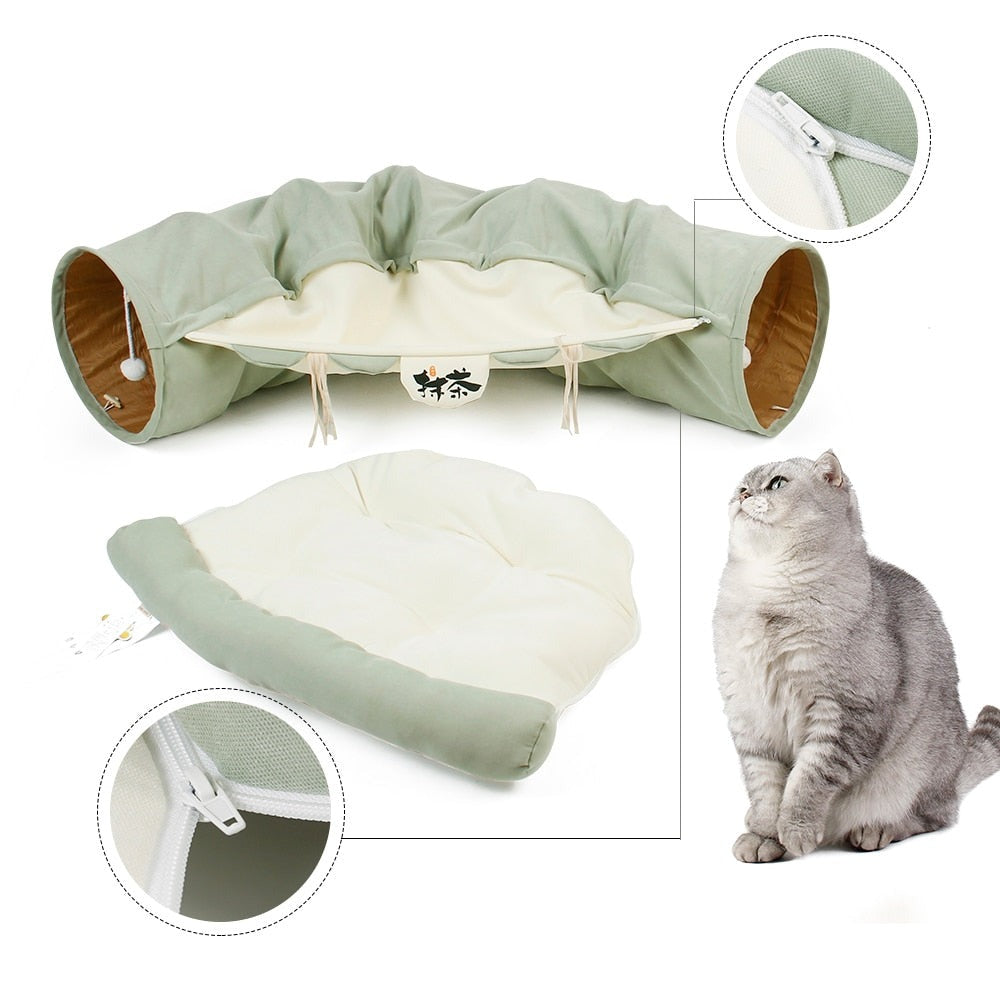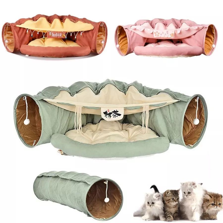 Ce lit tunnel pour chat va assouvir toutes ses envies.