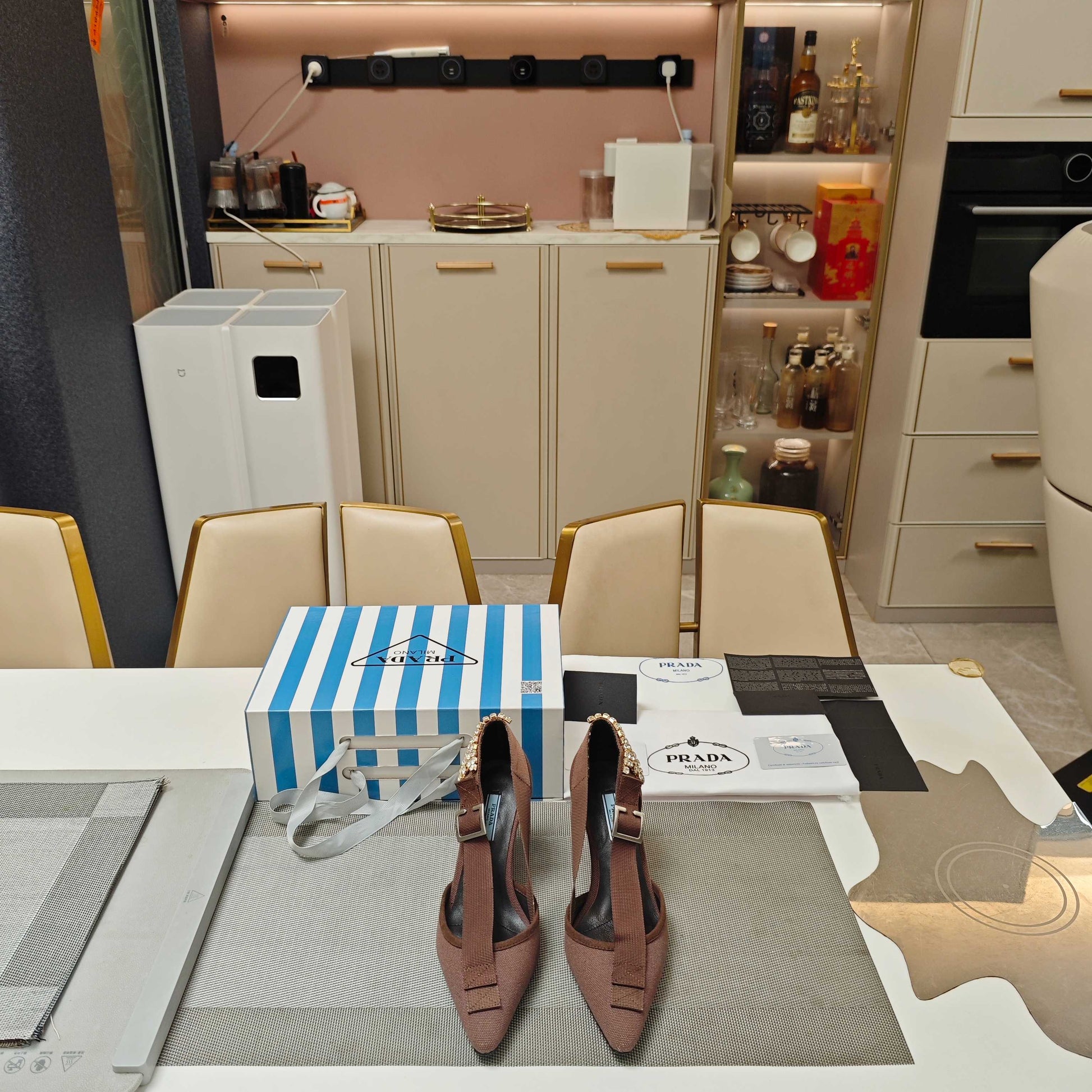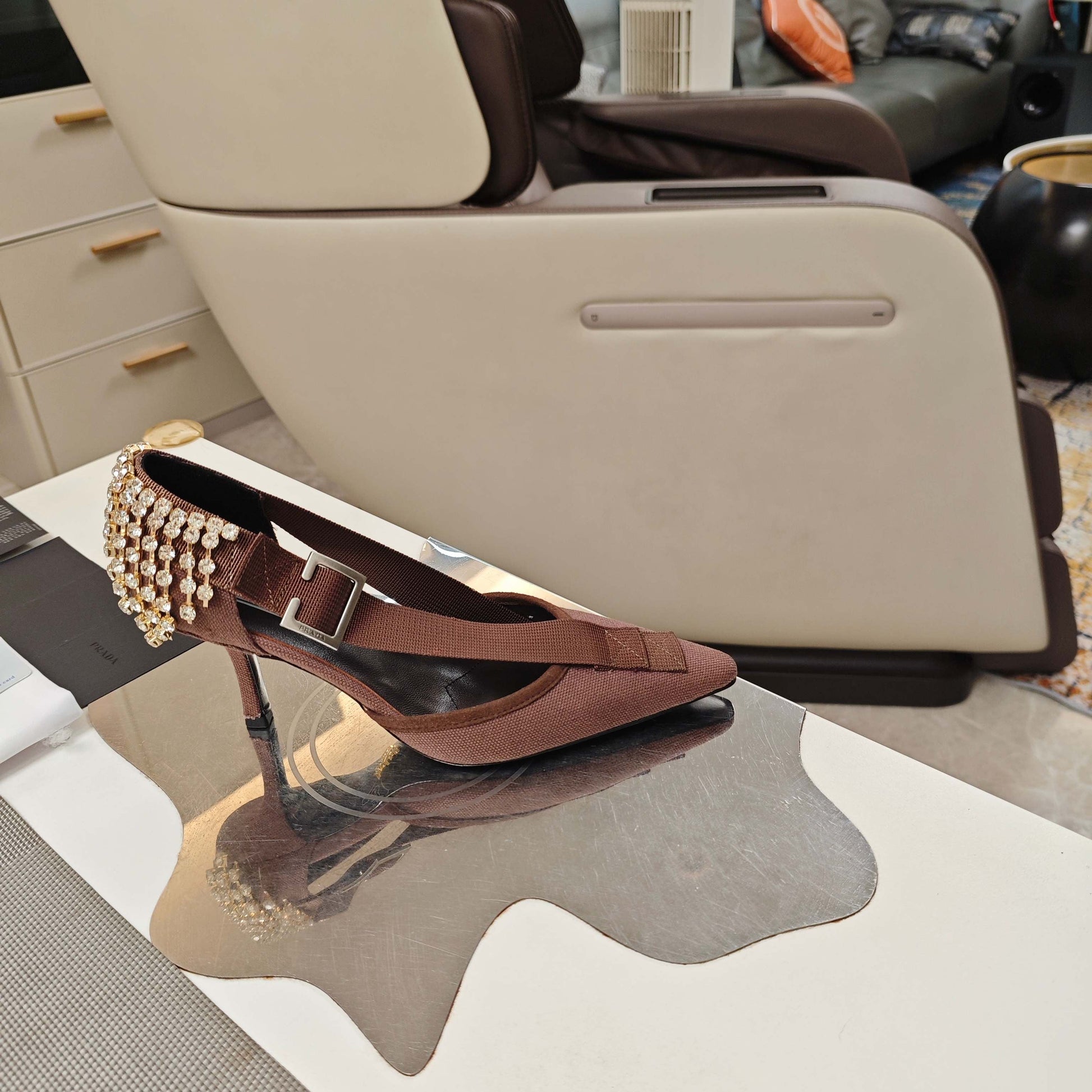PRA 26S High Heel Pump 70 Brown Canvas Rhinestones 630569