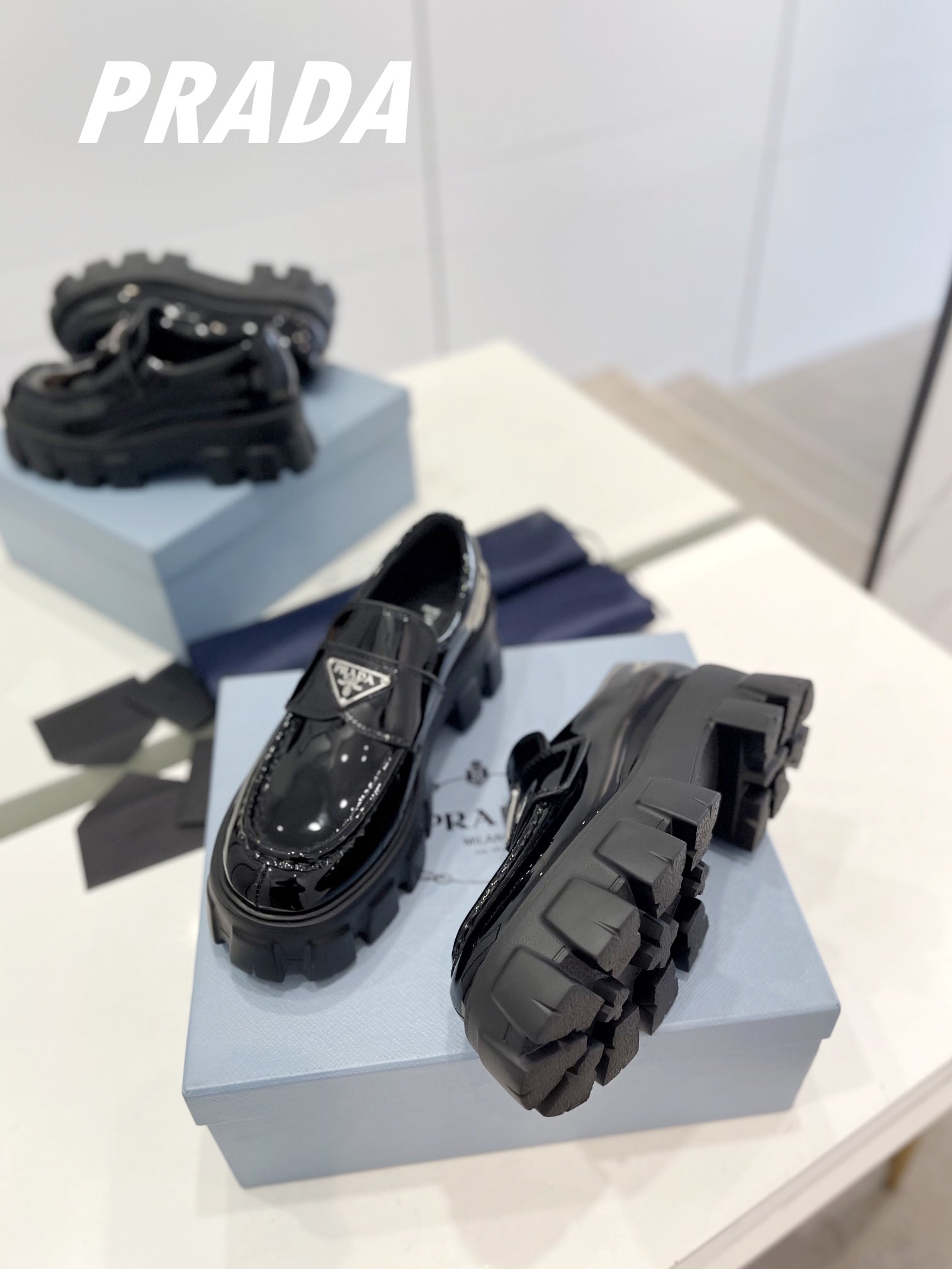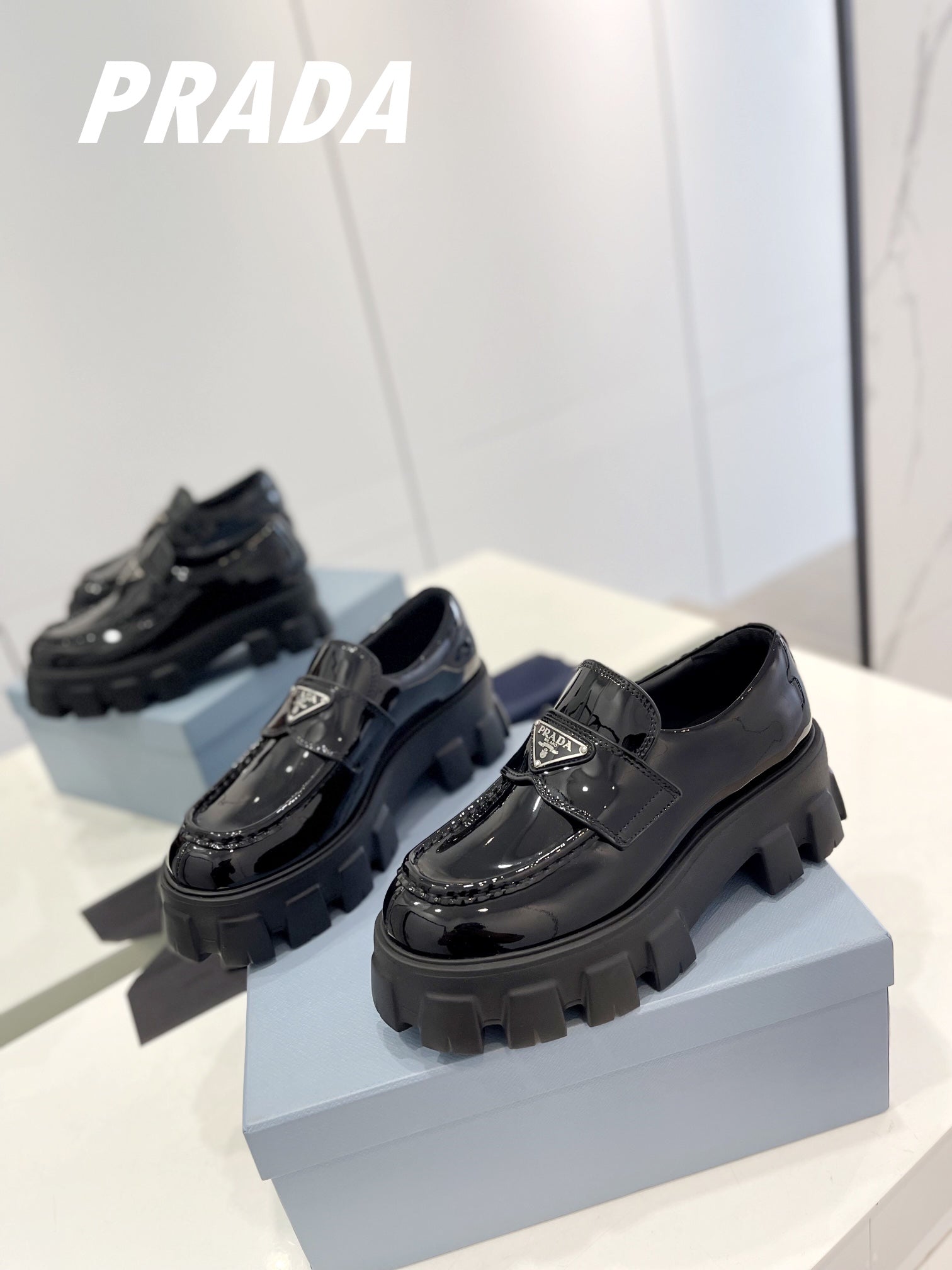 PRA BRUSHED LEATHER MONOLITH LOAFERS GLOSSY BLACK