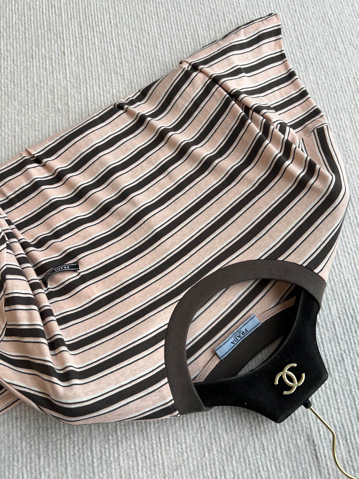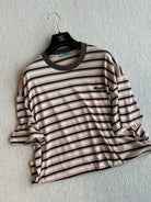 Prada 25 Striped Round Neck T-shirt Beige Brown Cotton