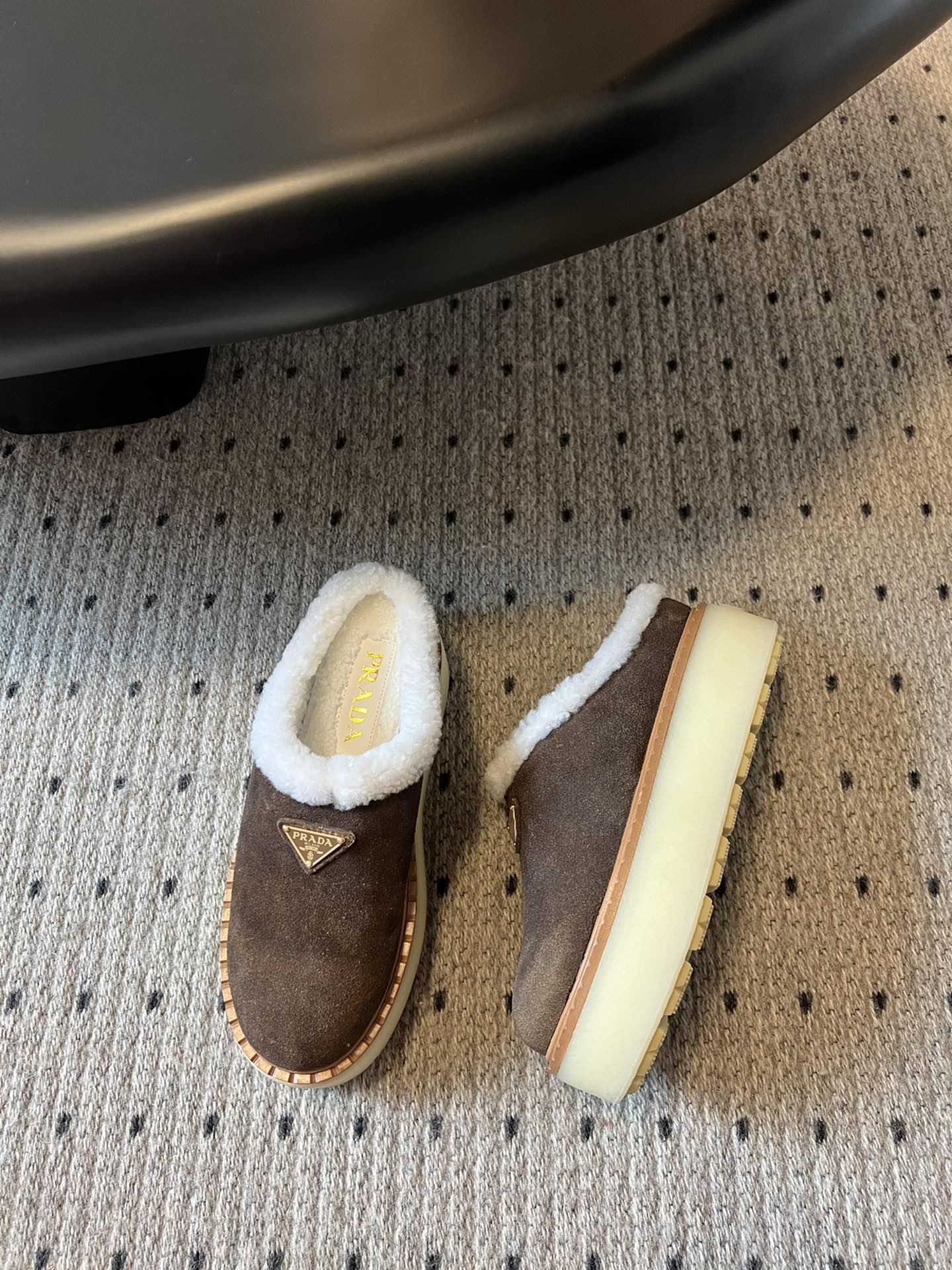 Prada 25s Furry Half-Cover Slippers Brown Suede And Wool 538428