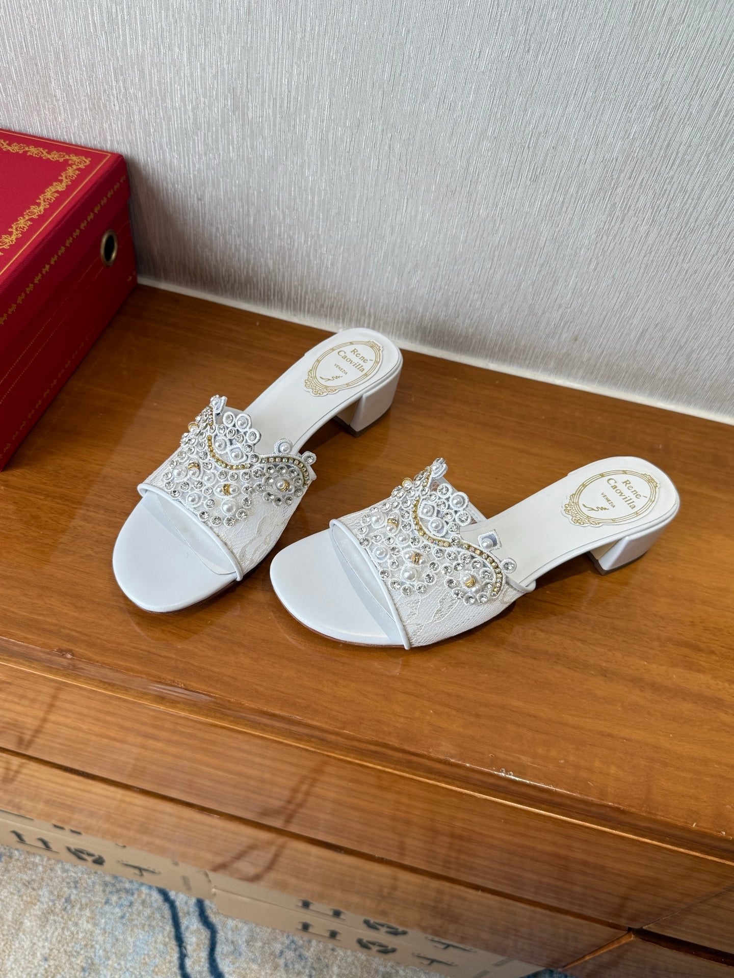 RC 25 Crystal Chandelier Sandals White Sheepskin 221963