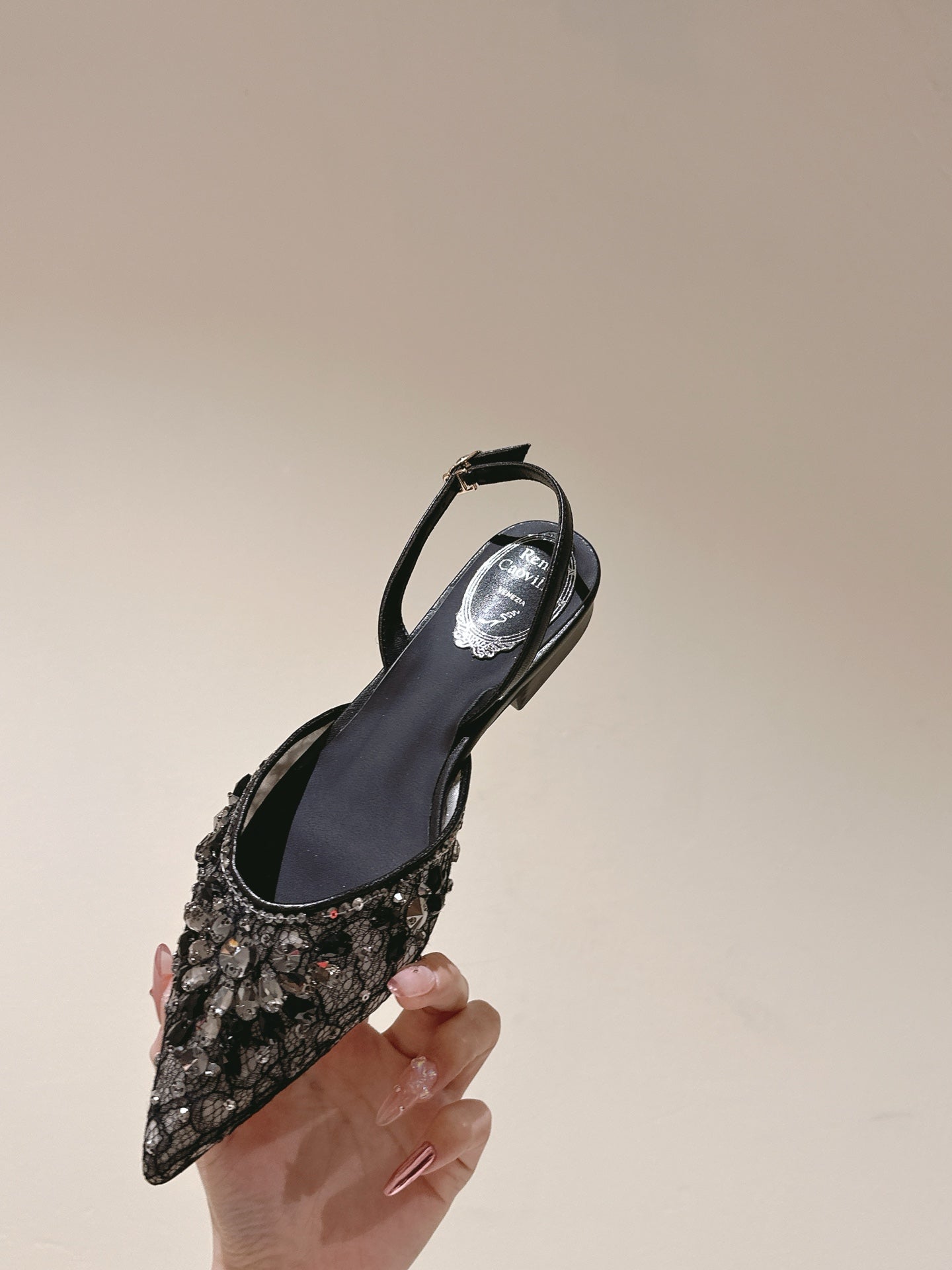 RC 25 Diamond Lace High Heeled Sandals Black Sheepskin 268055