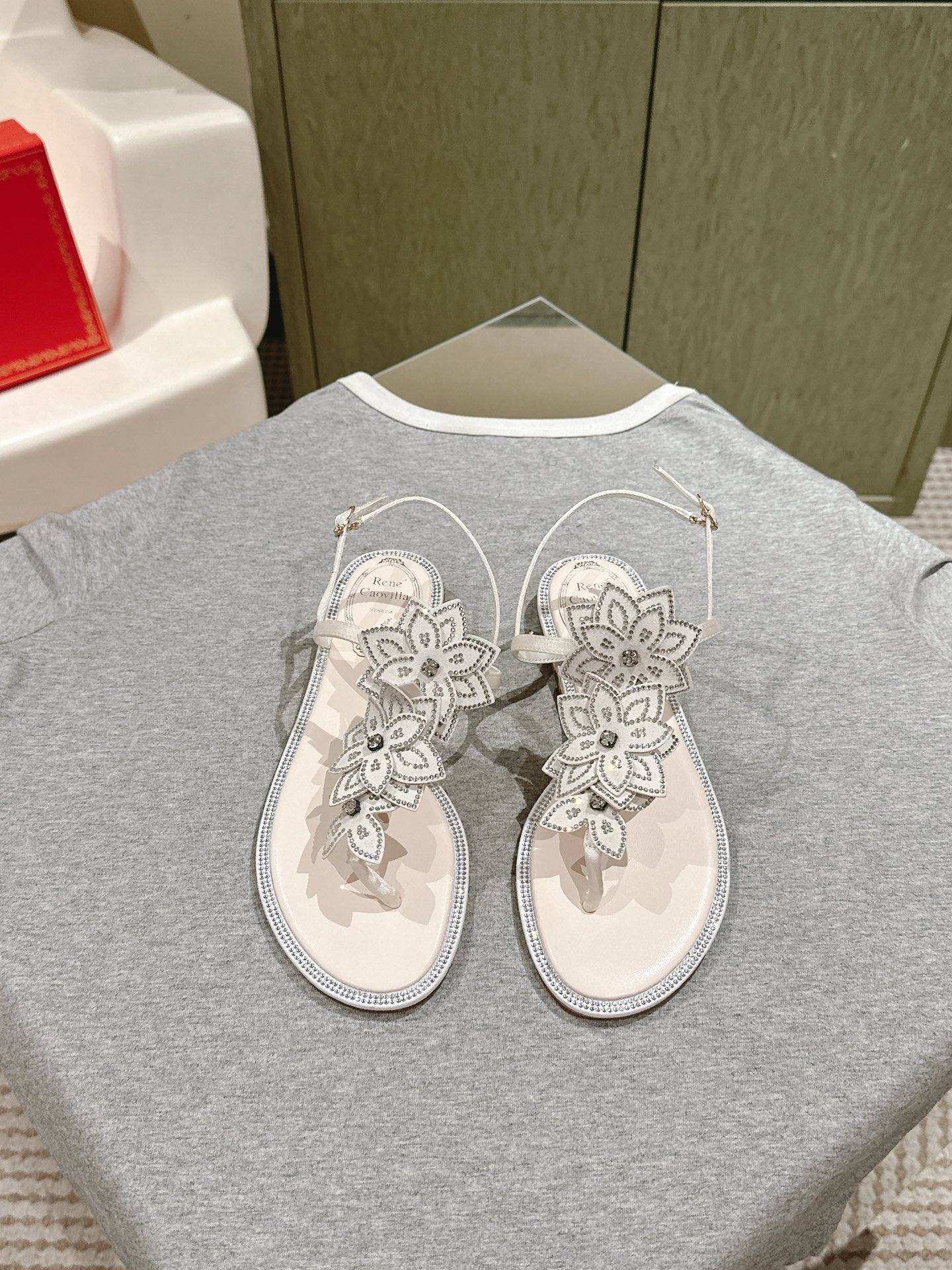 RC 25 Flat Sole Flower Thong White Silk Rhinestones 268063