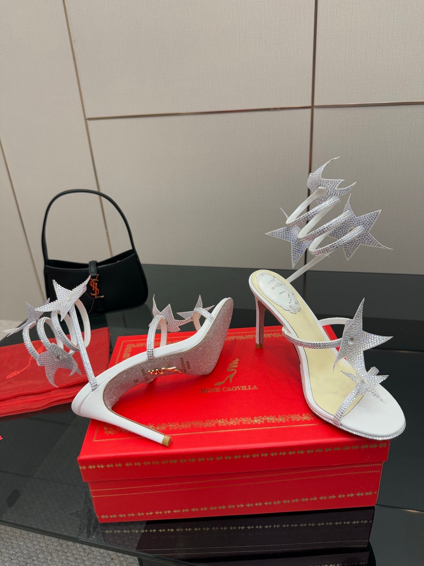 RC Sandals 9.5cm White Rhinestone Silk 302585