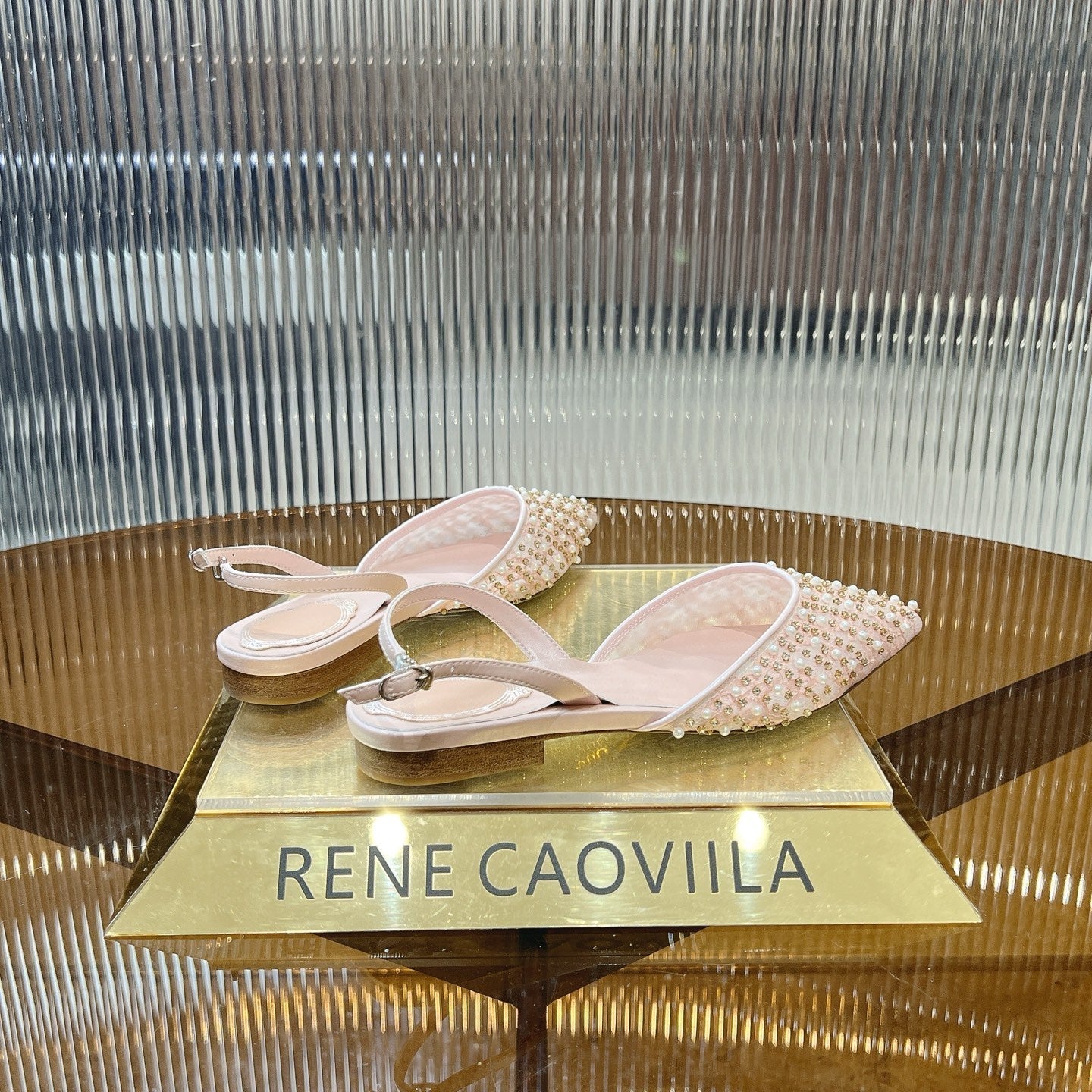 RC Slingback Shoe 1cm Pink Rhinestone Sheepskin 281984