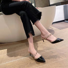 Rockstud Slingback Ballerina Flats Black Leather Cross Straps