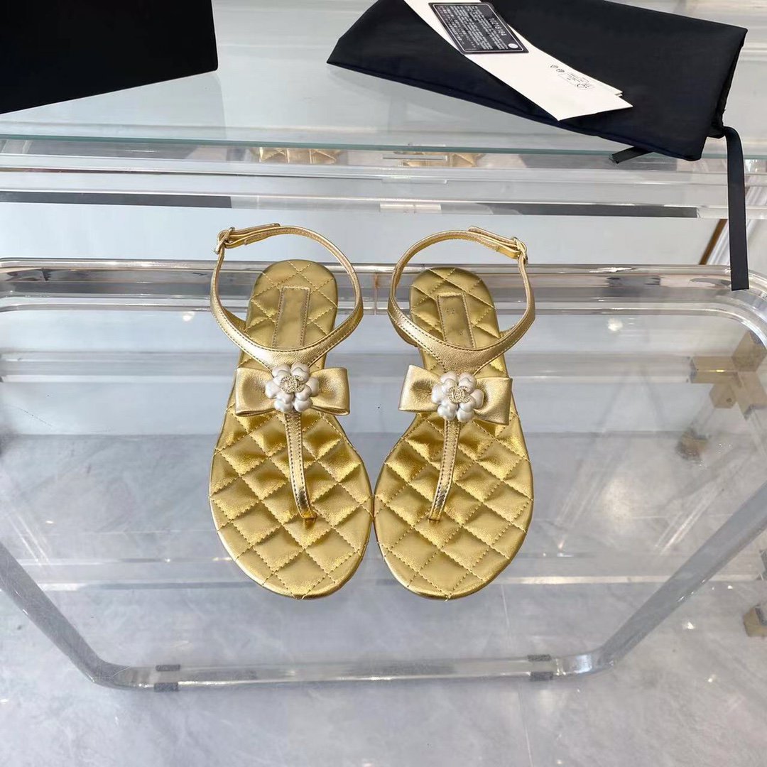 sandal gold metalic lambskin flower cc