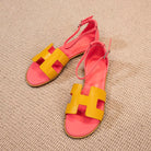 - Material: Sandal in calfskin with straight cut edges, "H" cut-out detail and thin ankle strap.