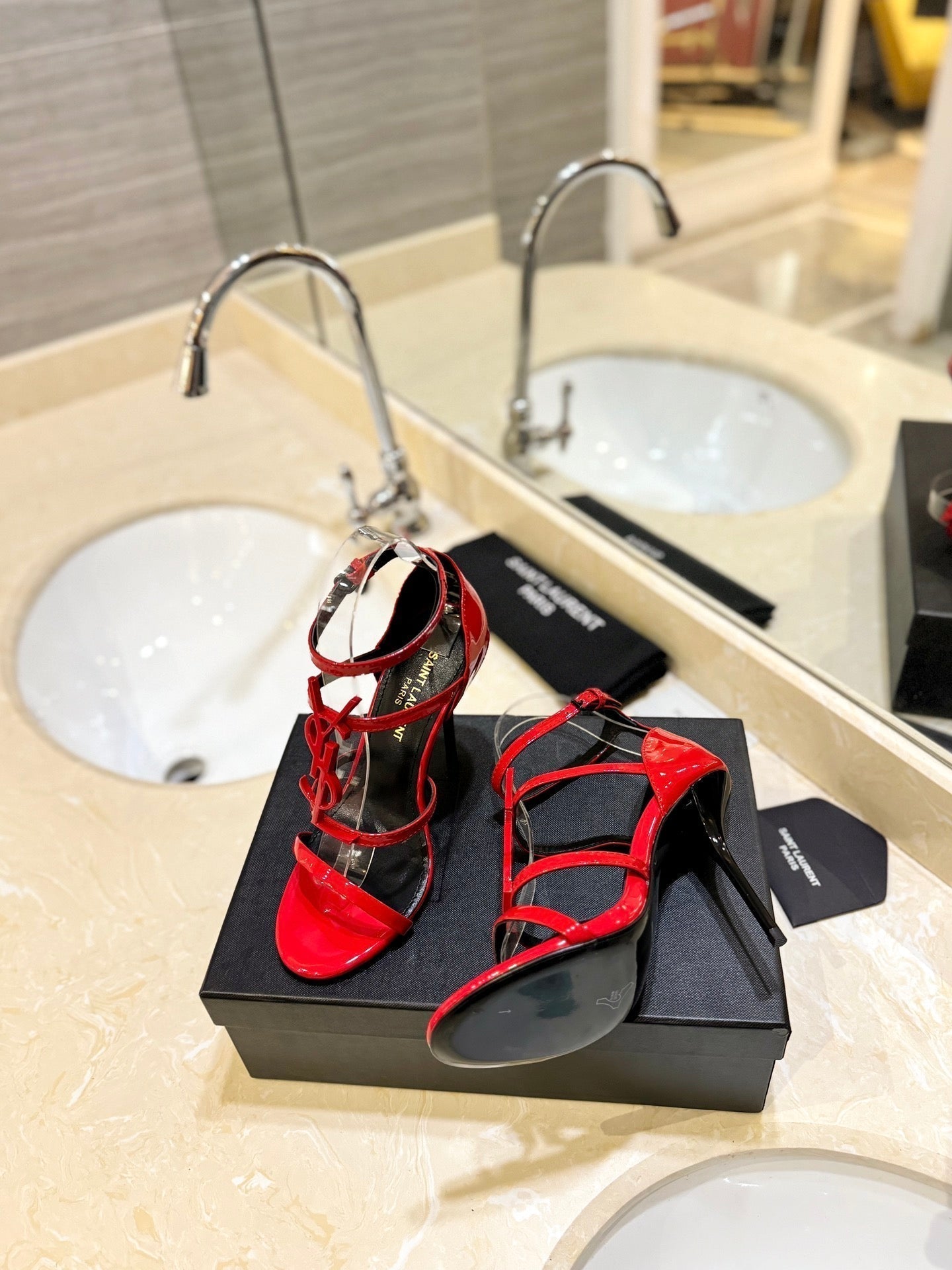 SL CASSANDRA HEELED SANDALS RED CALFSKIN