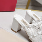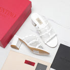 WOMEN'S BLACK ROCKSTUD WHITE MESH SLIDER SANDAL WITH MATCHING STUDS 65 MM
