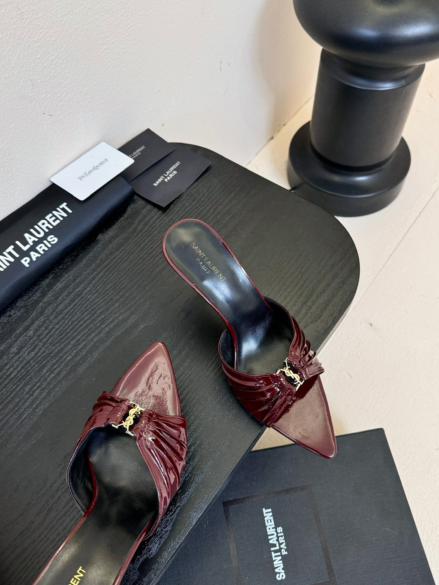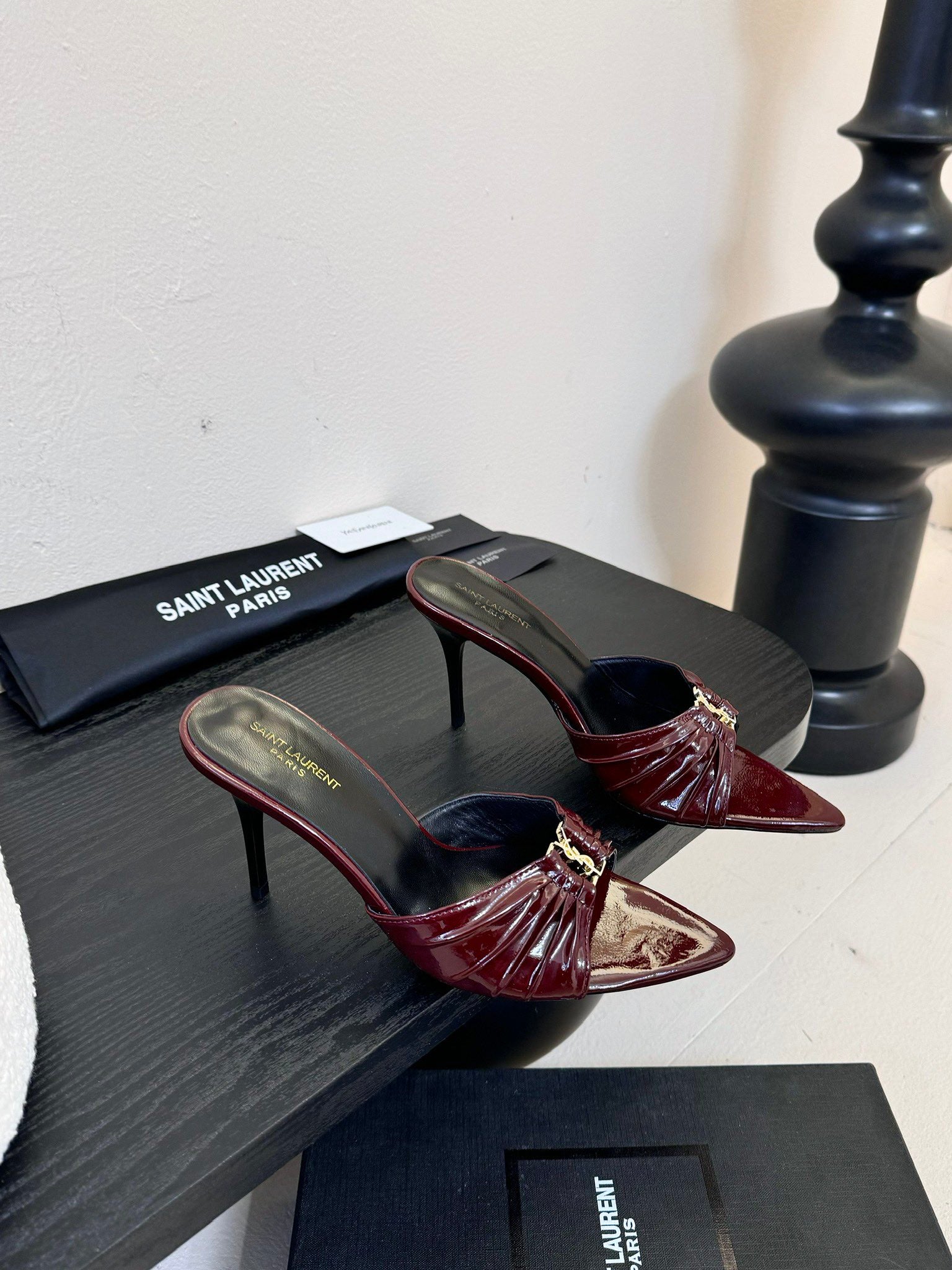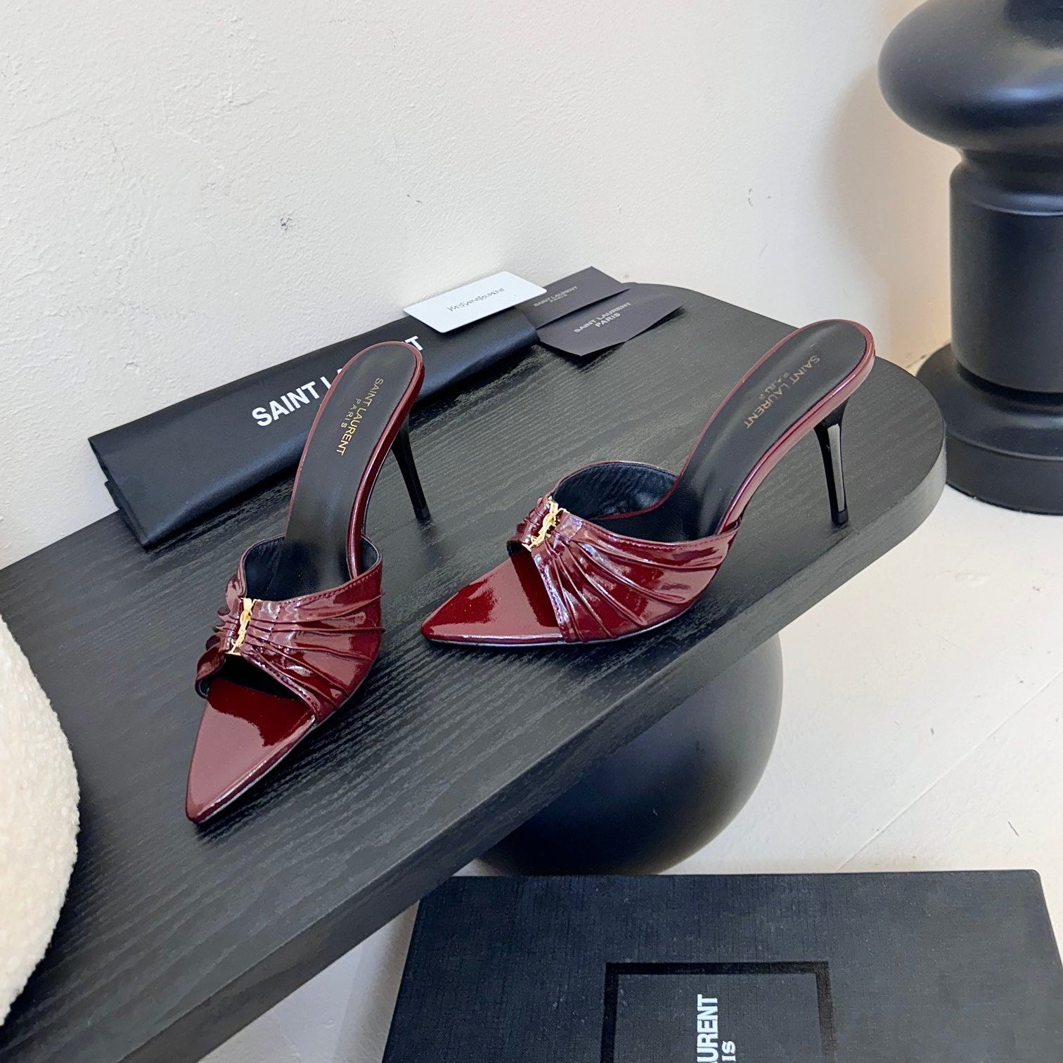 YSL 25 High Heel Sandal Red Black Patent Leather 296990